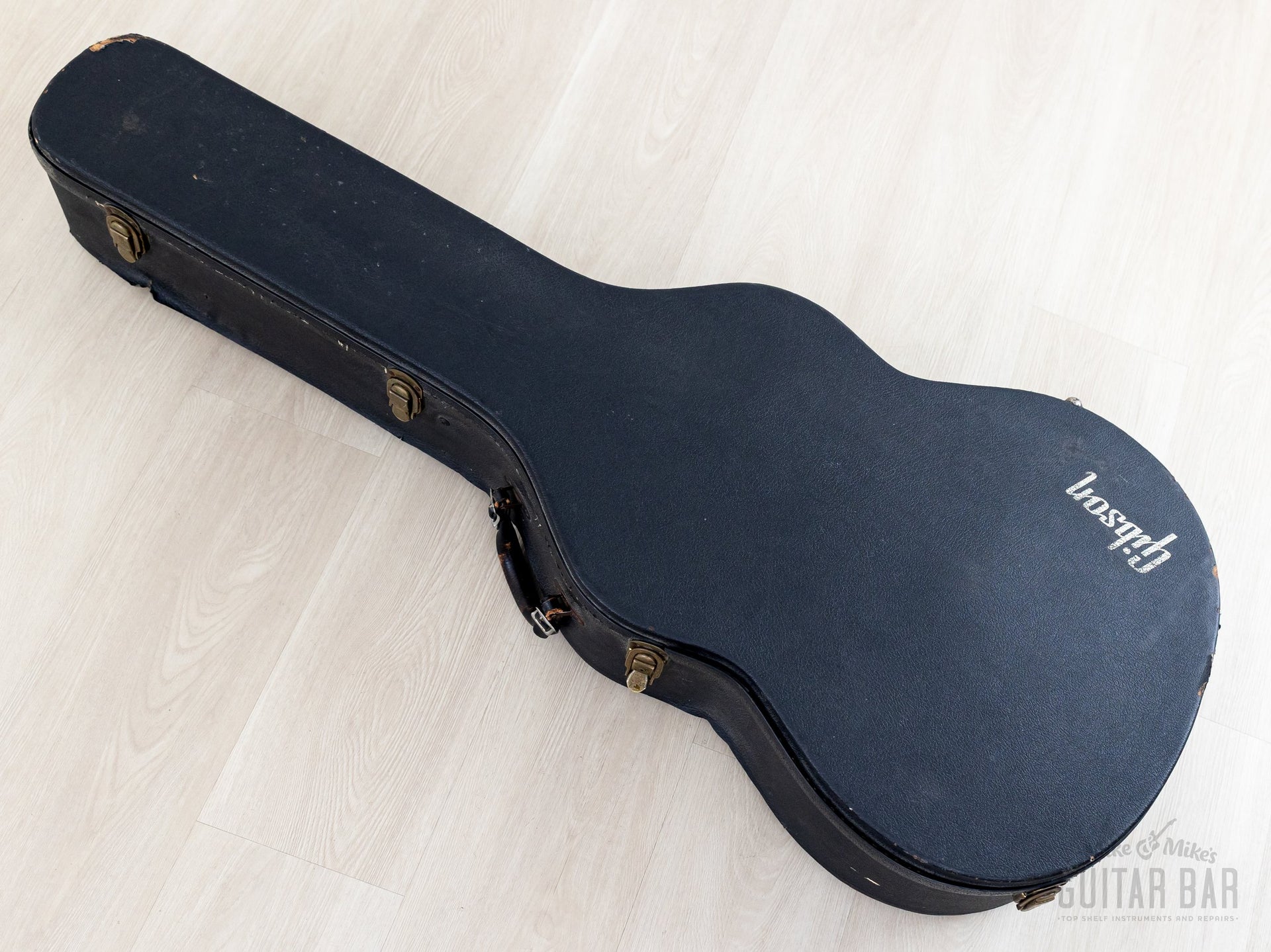 A circa 1970s Gibson black tolex hardshell case with purple plush interior is included.