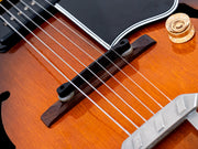 -Hardware: Brazilian rosewood bridge, raised parallelogram trapeze tailpiece (nickel-plated)