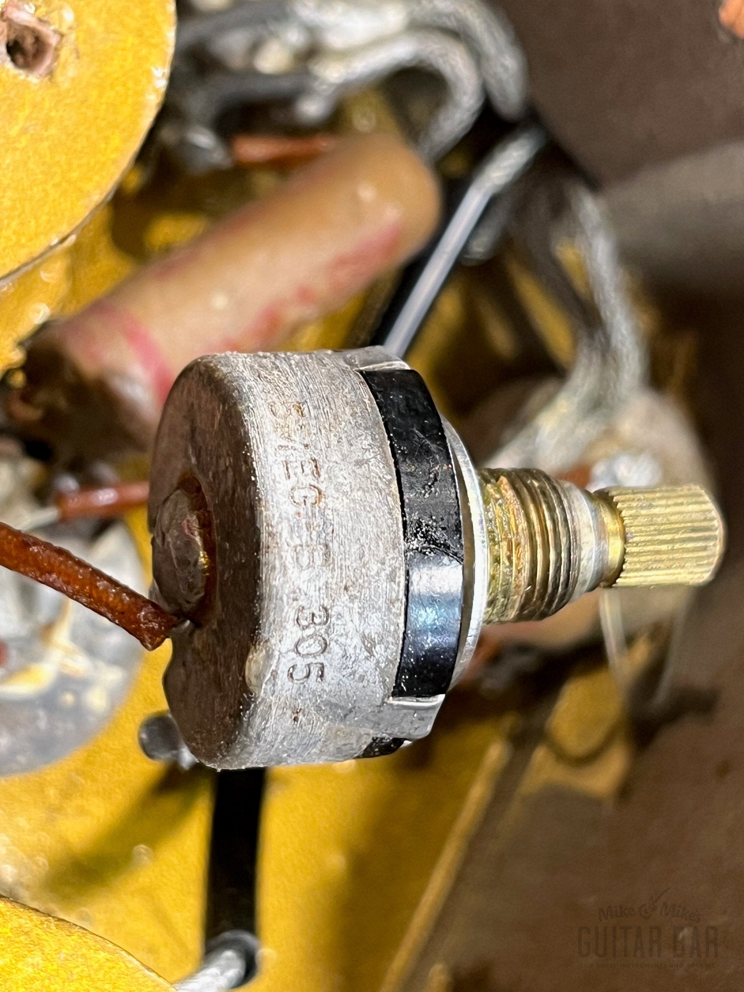Up for sale, a 1953 Gibson Les Paul Standard, featuring an “All Gold” nitro lacquer refinish and complete with a vintage hardshell case. It’s not every day you find an early Les Paul Goldtop under a kitchen table in a haunted house in the Texas Hill Country, but on the off chance that one does, it’s a guitar worth restoring in all its glory. A largely original instrument in need of a proper finish and neck work, this Goldtop was a real passion project for us here at Mike & Mike’s Guitar Bar, leveraging the work of numerous luthiers at the top of their game in the Pacific Northwest.