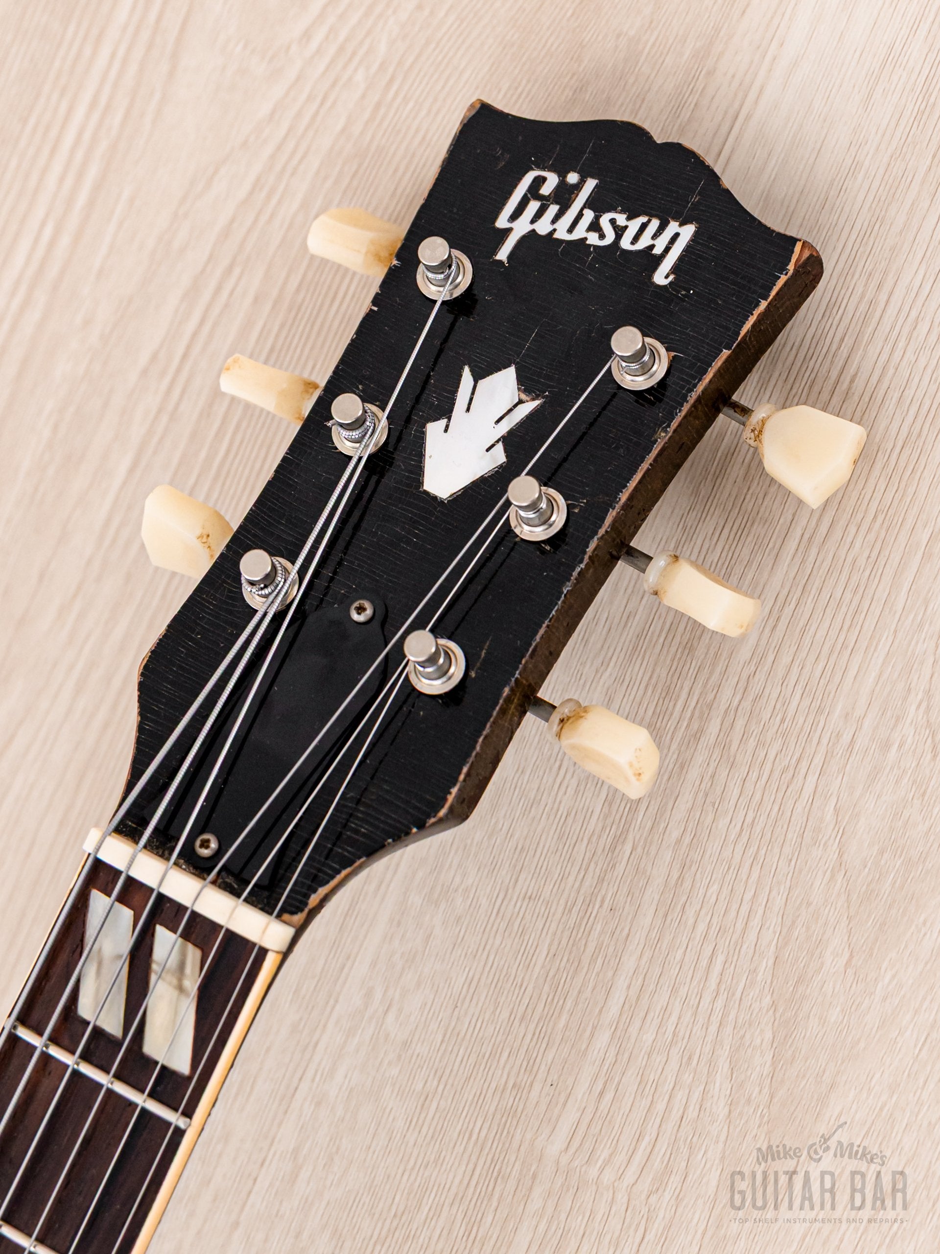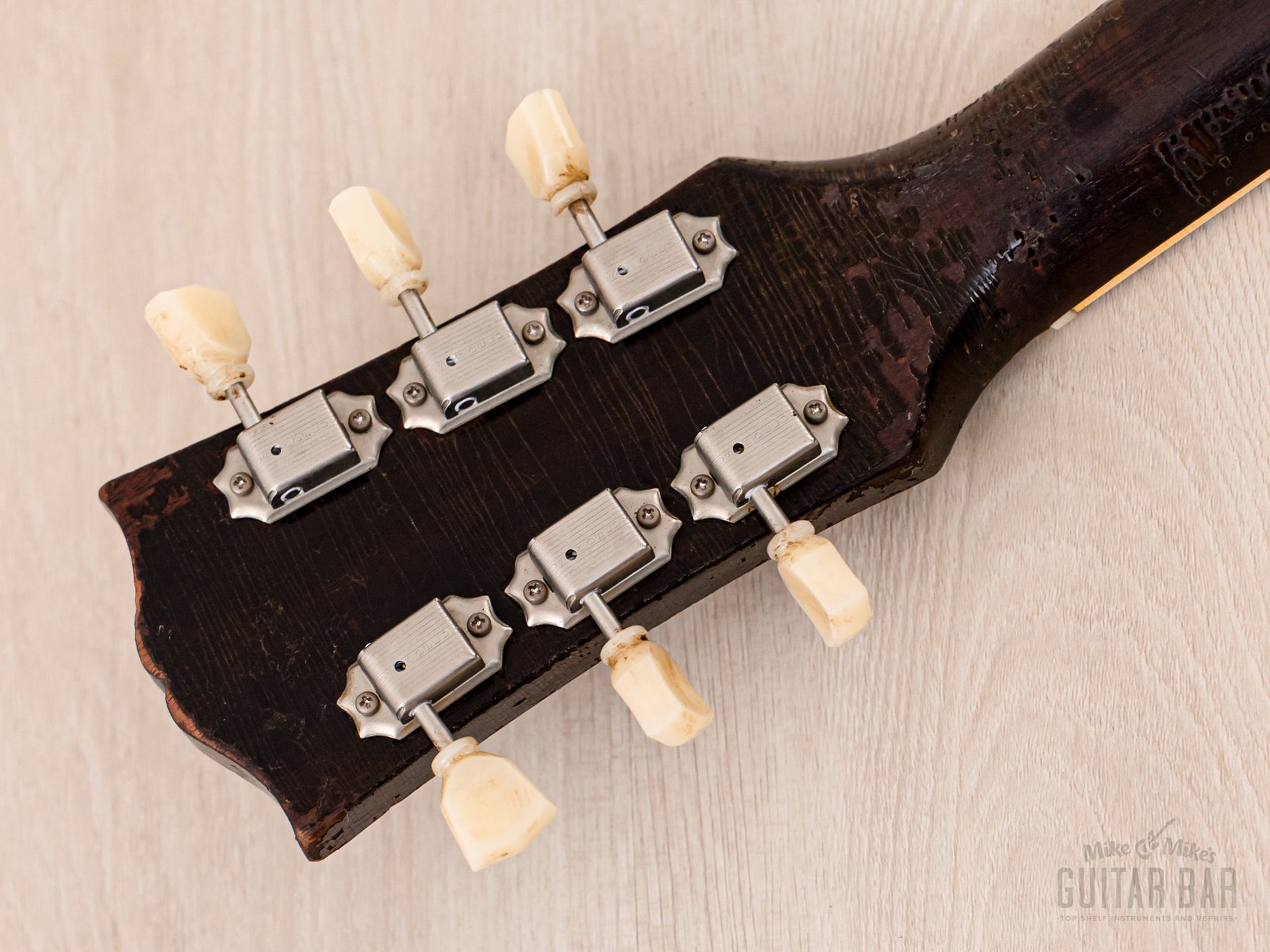 The Sunburst nitro lacquer finish presents extremely well, exhibiting subtle checking and 100% original with no touch-up or overspray. There are just a few small finish chips on the treble side of the back and light finish scratches along the perimeter, with sparingly little wear on top. The lacquer on the neck profile has a combination of finish loss and palm wear through the gloss, very smooth and inviting to the palm.