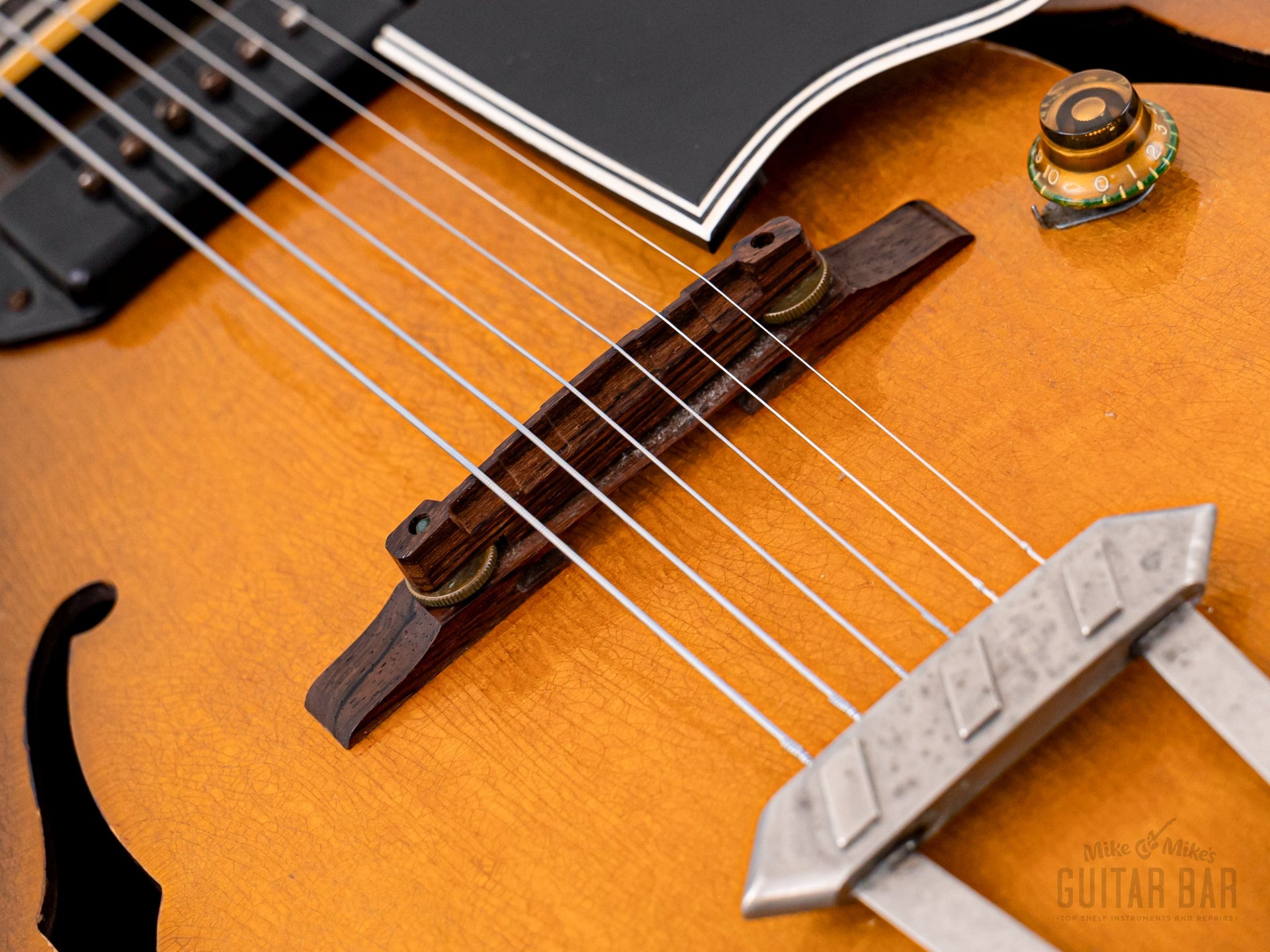 The fully hollow 16" wide maple body yields tremendous natural detail, tonal complexity, and treble immediacy, characteristic of the note attack and clarity of maple, but also the smoothness and warmth attributable to the hollowbody construction. The sound is bold and balanced acoustically, and the P-90 yields plenty of glassy, percussive cut and sweet midrange bark. This ES-175 weighs 5lbs 10oz, professionally setup here at Mike & Mike’s Guitar Bar with 12-52 flatwound strings, low action, and accurate intonation.