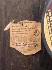 The speakers are the original pair of Fender-branded Jensen C12Ns with clean black frames. The most popular (and relatively uncommon) vintage speaker option offered in the Black Panel era Twin, these Jensens offer excellent headroom, clarity and detail. The tube chart is clean and fully intact, with an "QD" date stamp that translates to April of 1967.
