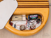 Wear on the gloss Natural finish is limited to light buckle rash central to the back and some minor dings on the body as a whole. The neck profile is smooth and clean, with a few shallow marks along the maple inserts that are virtually undetectable to the palm.