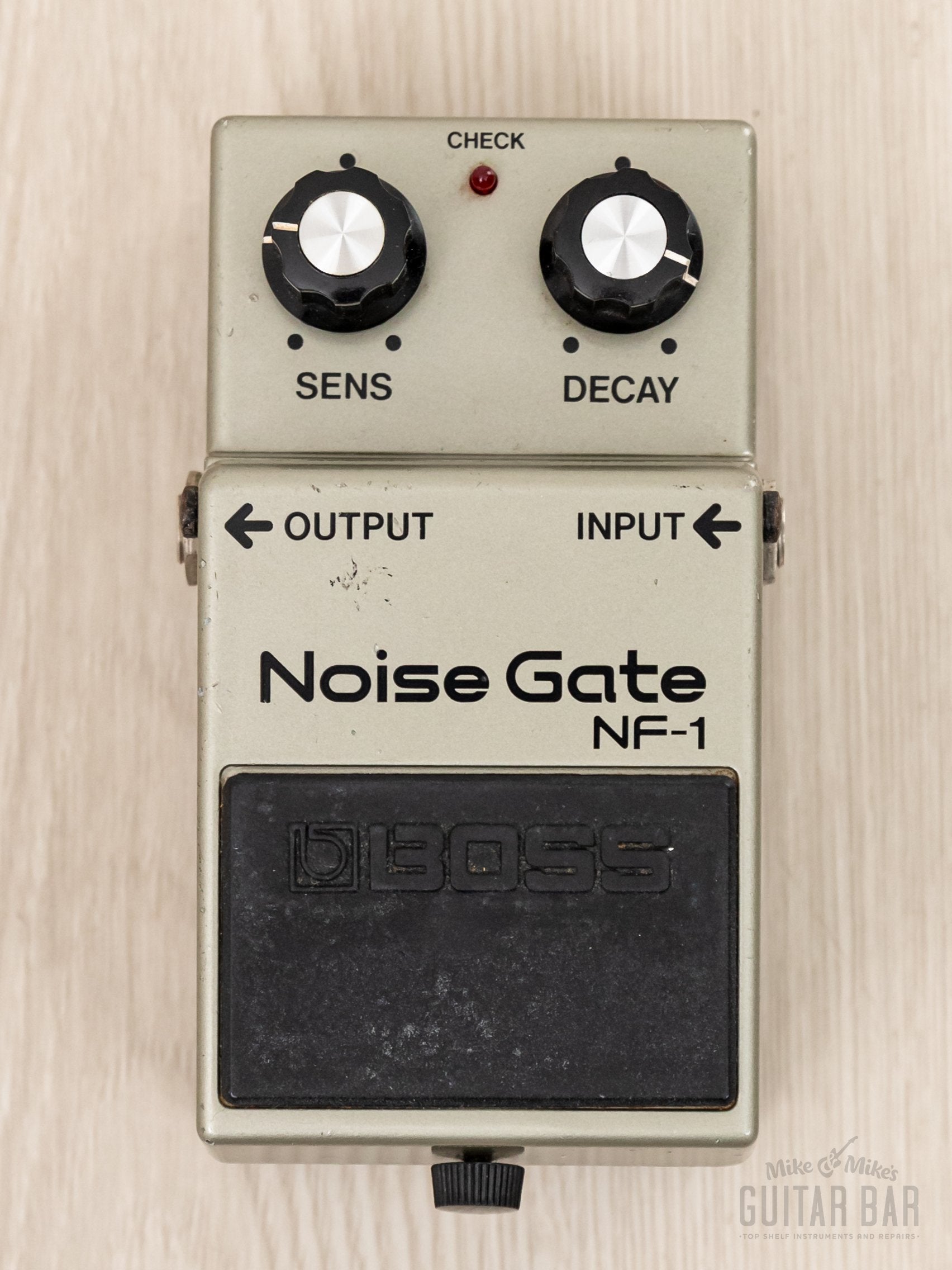 Up for sale, a 1981 Boss NF-1 Noise Gate in mint condition, complete with box and all factory paperwork and stickers. The NF-1 is a noise gate that cuts off all sound as soon as the level falls below the threshold set. Adjust the Sens knob to the desired threshold level, and adjust the Decay knob for how fast you want the sound to disappear. Simple!