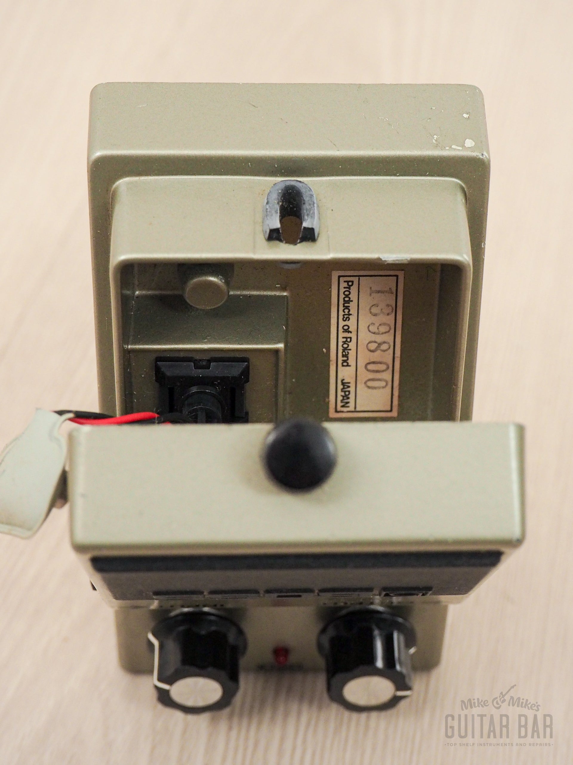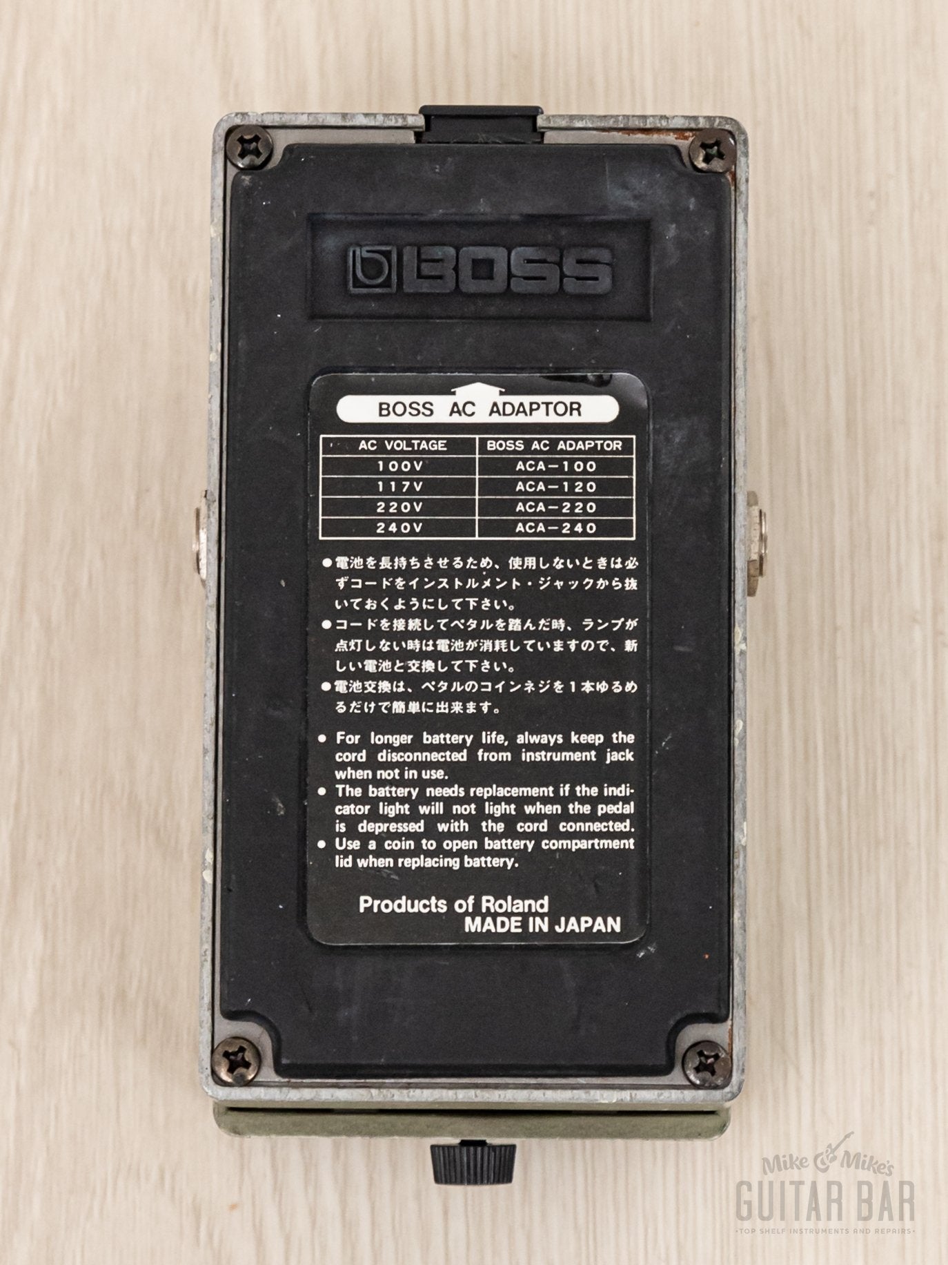 This pedal has a flawless enclosure, original black foil "Made in Japan" label on the back, and original knobs. The serial number sticker is intact inside the battery compartment, dating production to December, 1981.