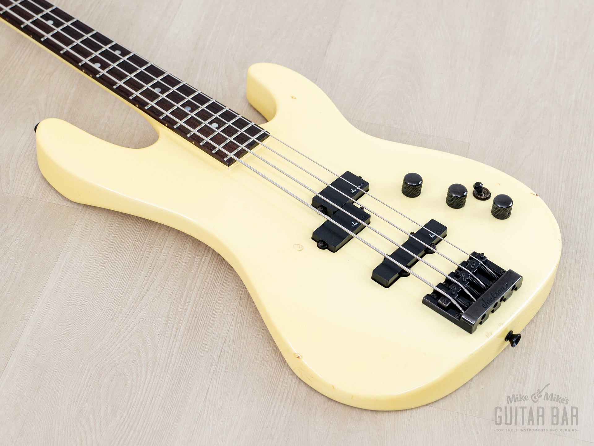1987 Charvel Jackson Model 3B Vintage Neck Through PJ Bass Pearl White, Japan