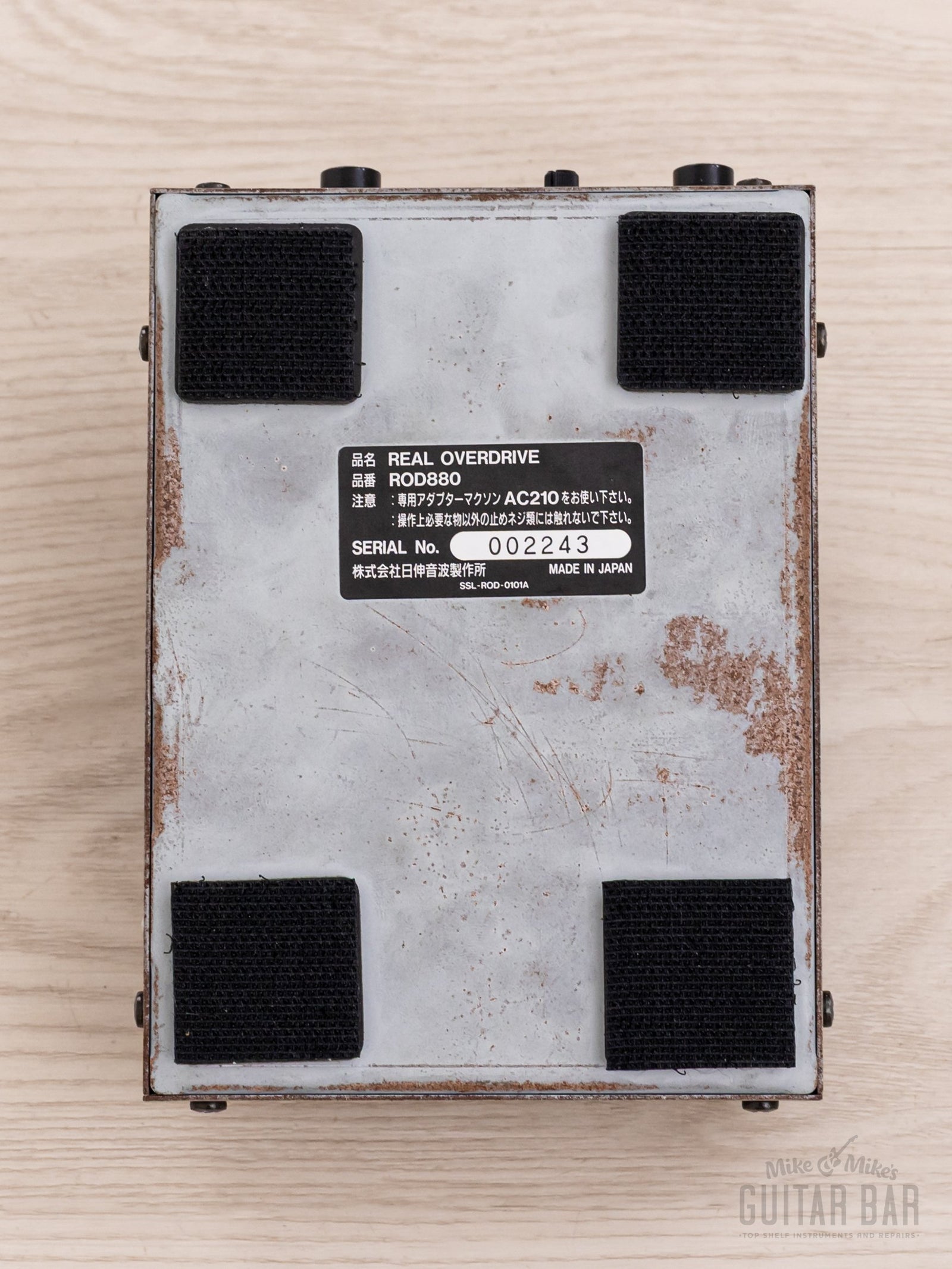 This ROD-880 is in great shape, with mild oxidization on the baseplate. The graphics are pristine, the original knob set is present, and the serialized sticker on the bottom is intact.