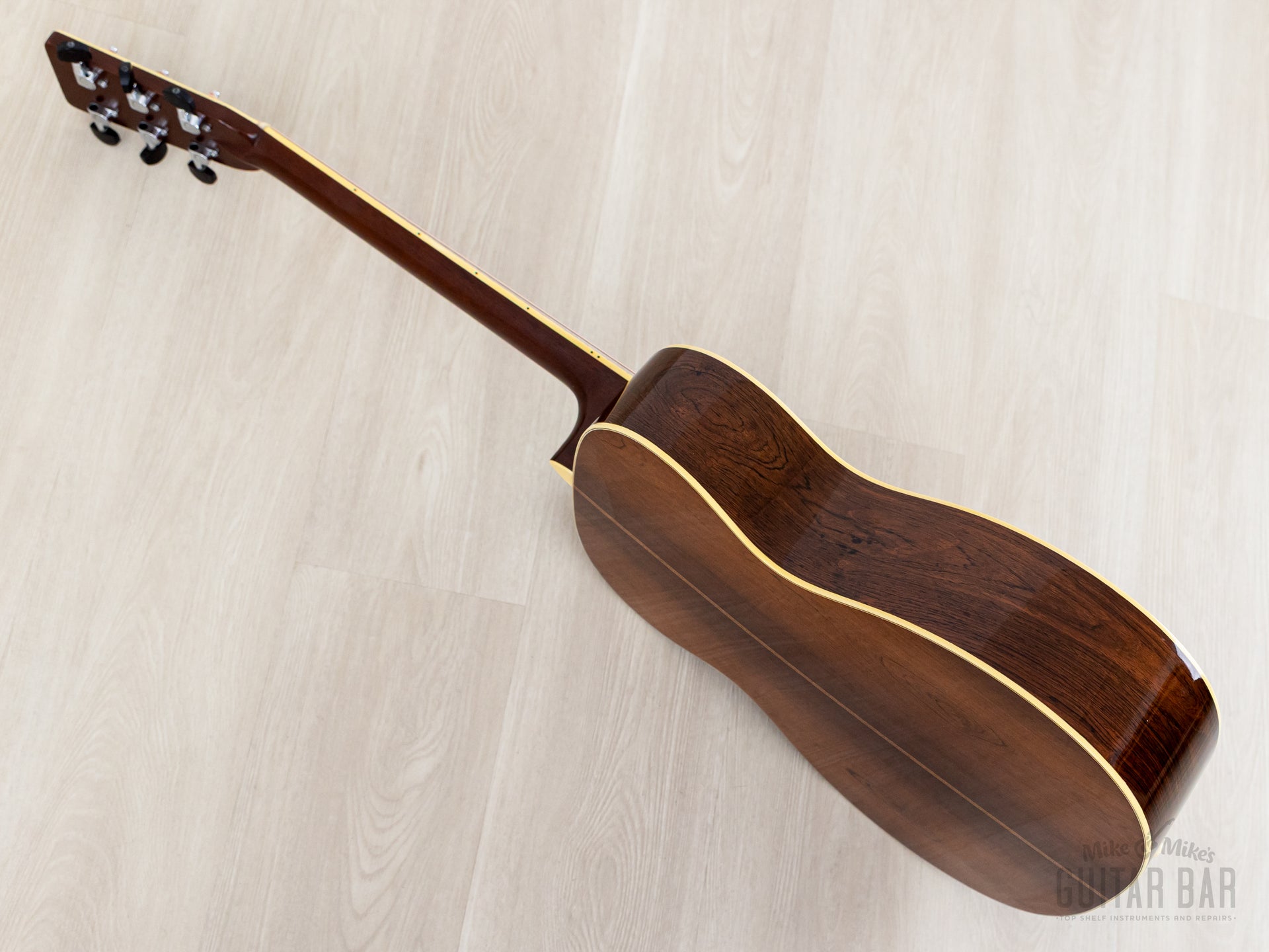 Up for sale, a 1998 Martin Custom 000-28 in near-mint condition and in perfect working order, complete with the original hardshell case and owner’s manual. A custom-ordered iteration of one of Martin’s most popular body sizes, this 000 features an Engelmann spruce top with 5/16” scalloped X bracing, bookmatched genuine Brazilian rosewood back and sides, and ornate marquetry including abalone purfling, vertical “C.F. Martin” inlay on the headstock and Pre-War-style fingerboard inlay.