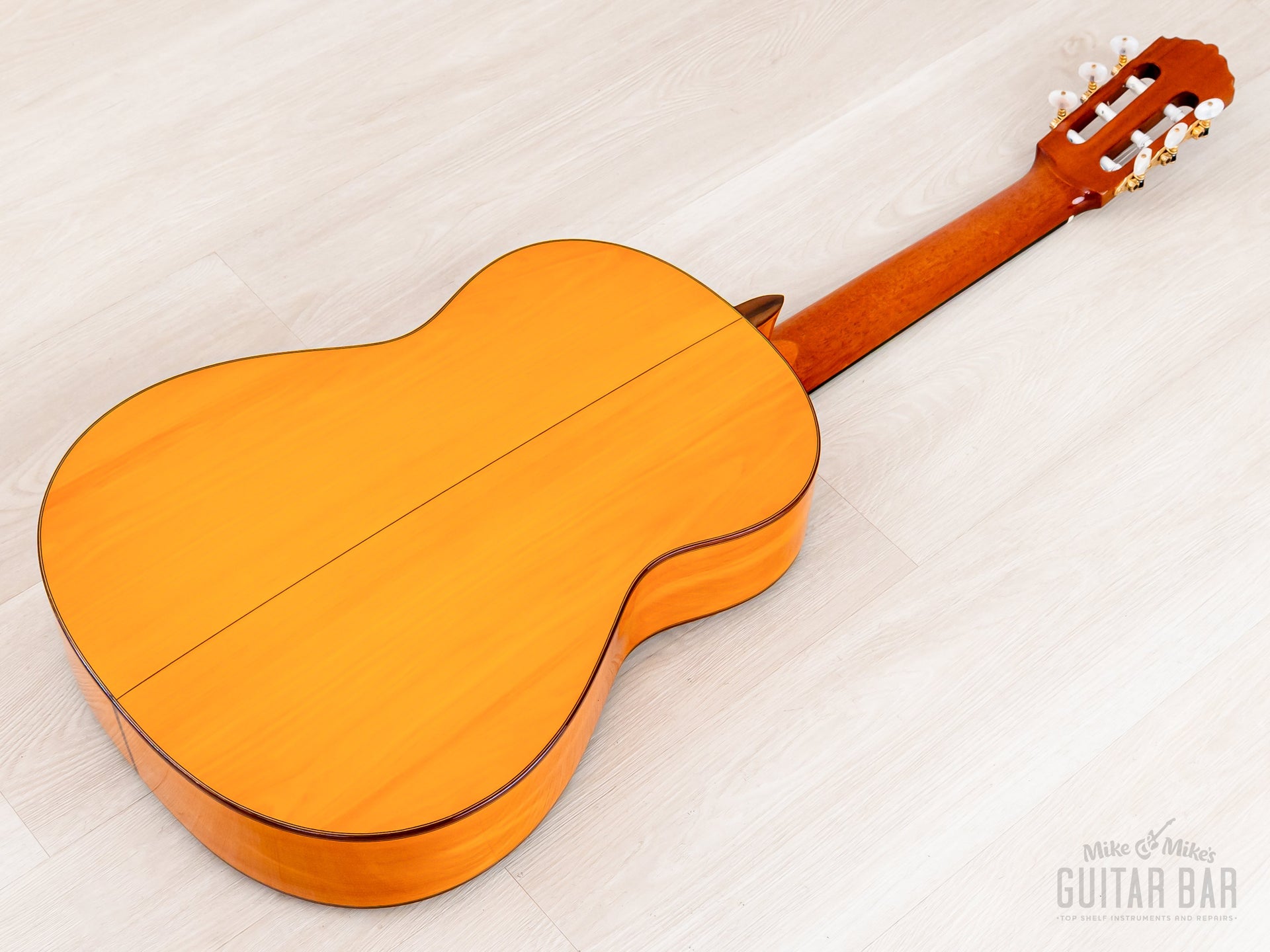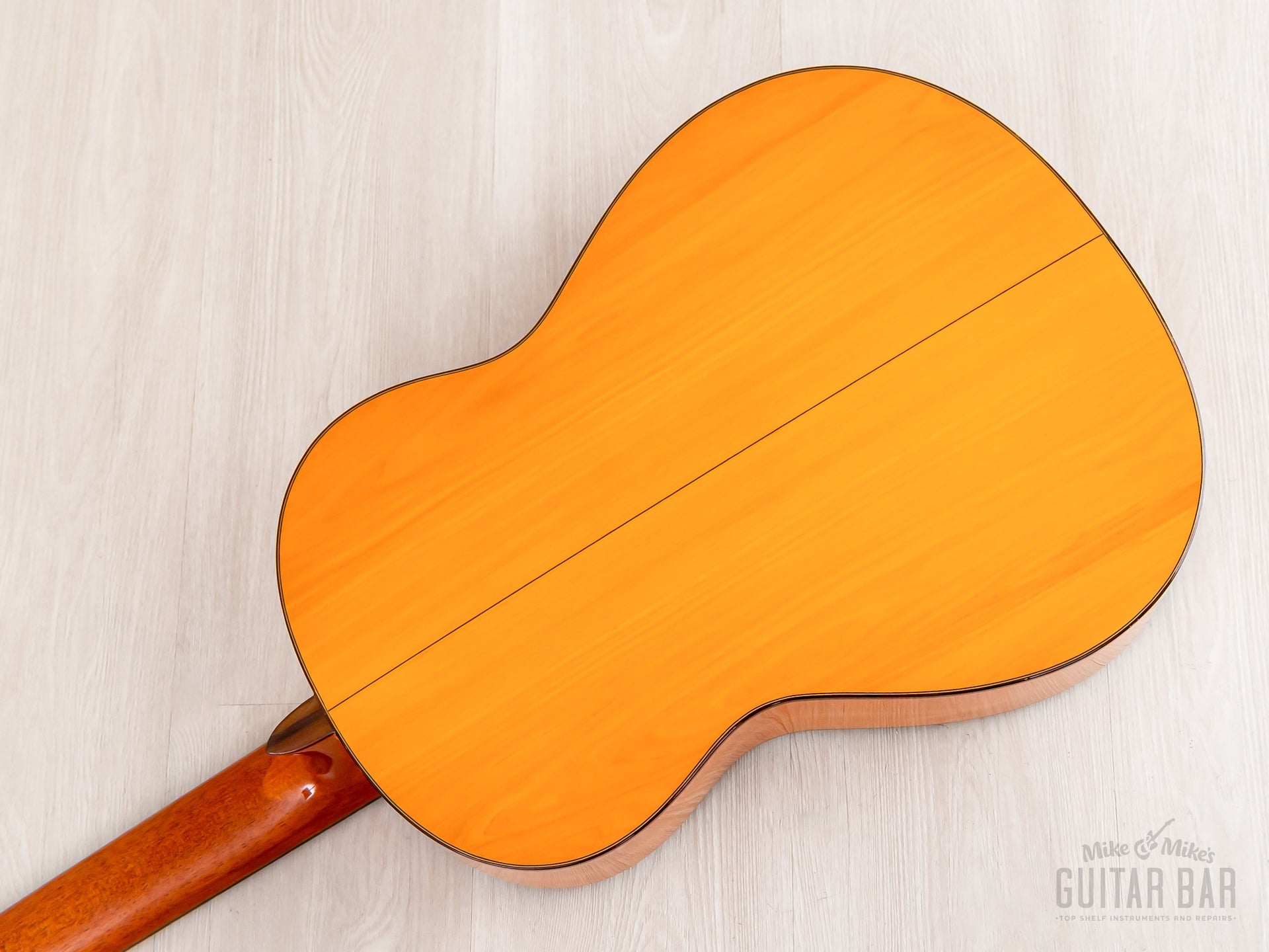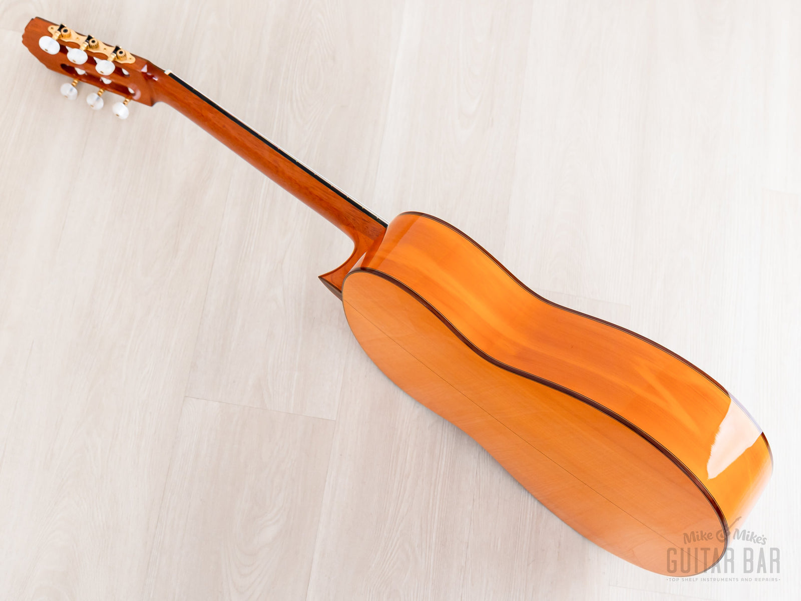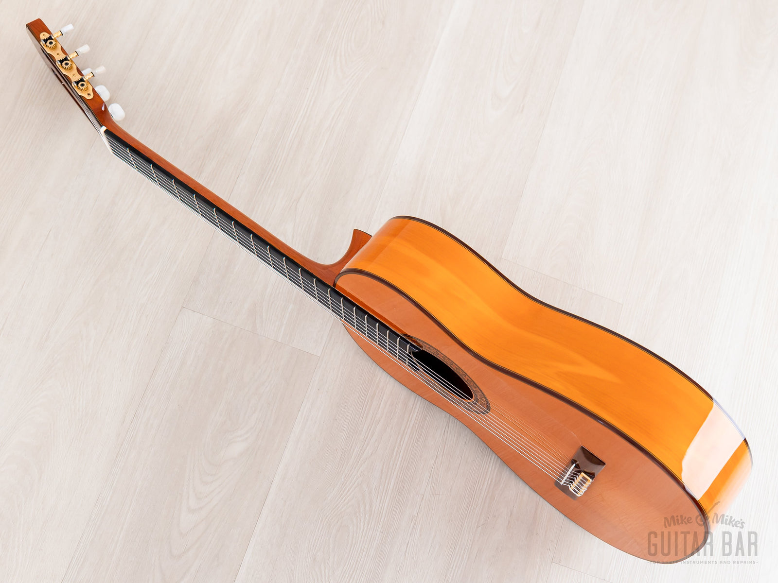 This is a crack-free, well-kept example, with cosmetic wear on the gloss lacquer finish limited to a few dings on top just south of the bridge and just a couple tiny marks on the rims. The smooth gloss on the neck profile is flawless.