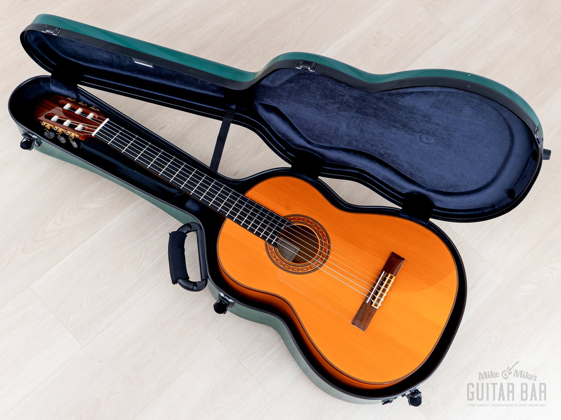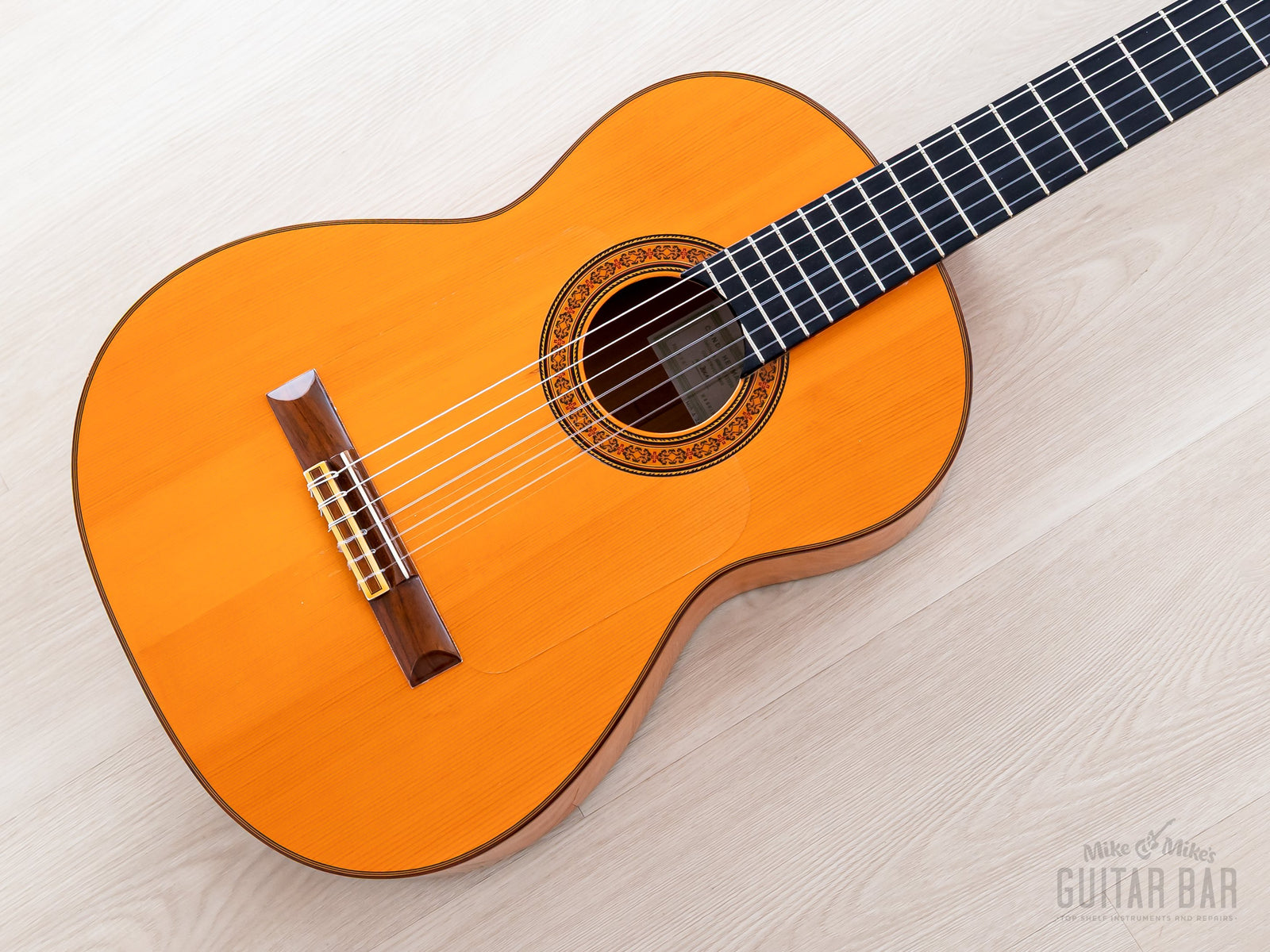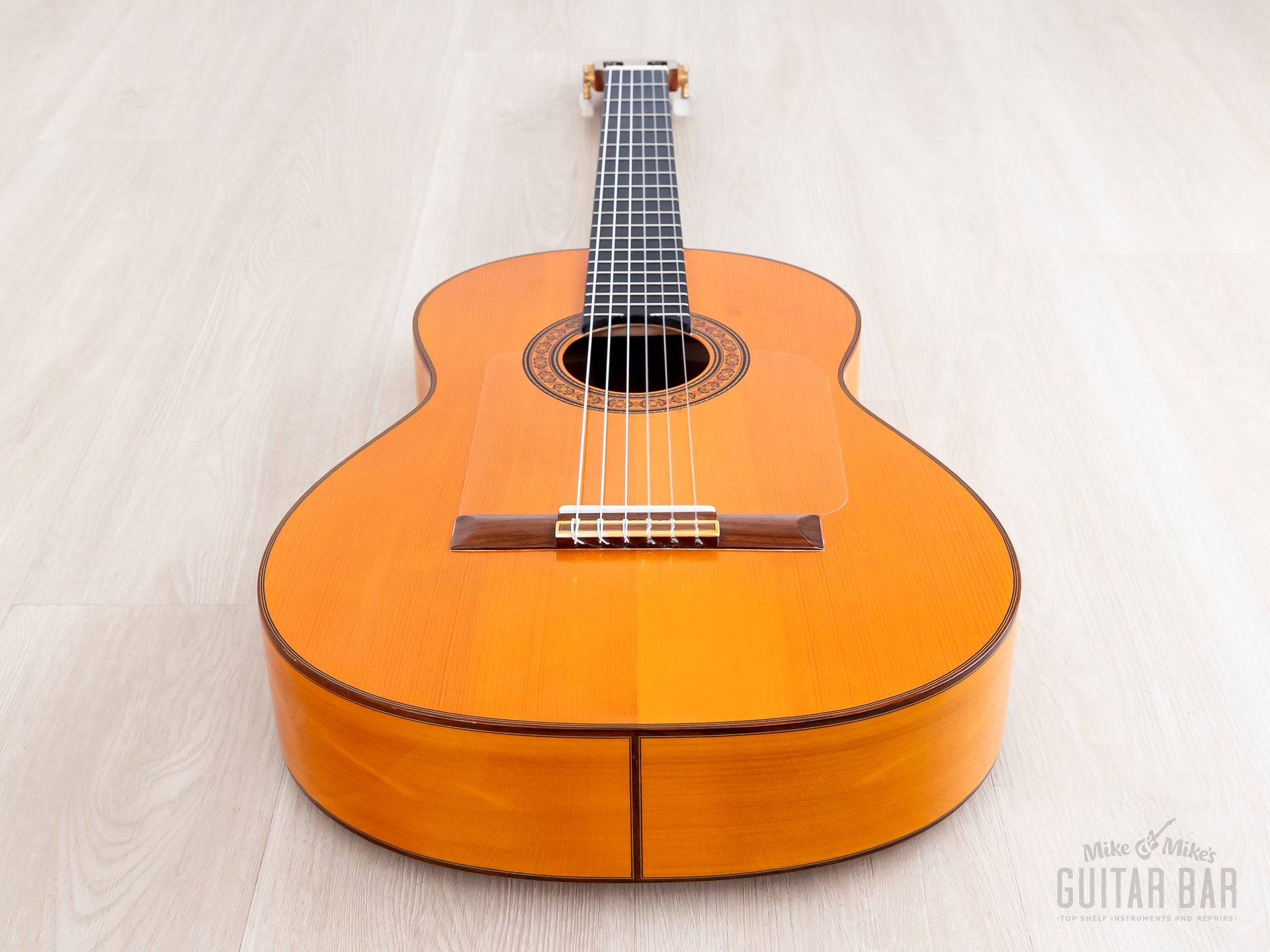 The German spruce top features five-fan bracing (à la Antonio de Torres), allowing the soundboard to resonate freely for a crisp, open sound. The Spanish cypress back and sides yield a dry, clear tonal profile, exceptionally well-suited to flamenco applications. There’s a certain punchy and immediate quality to this A28, encouraged by the longer 664mm scale length, and while the lows are dark and pensive, the trebles are smooth and soaring, ensuring this Model A28 is very able-bodied for melodic playing. Weighing 3lbs 5oz, this Model A28 has been professionally setup here at Mike & Mike’s Guitar Bar with normal tension strings and ideal action.