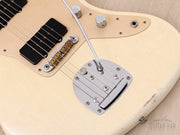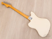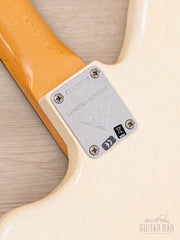 At only 7lbs 12oz, tonewoods include a lightweight ash body, quartersawn maple neck, and a slab rosewood fingerboard with a modern 9 1/2“ radius. The pair of Custom Shop Hand-Wound black bobbin pickups deliver a range of powerful and defined Jazzmaster tones, with plenty of sparkle and percussive cut on tap. The bridge has a gutsy punch, the neck is smooth and broad, and engaging the Rhythm Circuit on the guitar's lower body horn yields warmer, wooly sounds. These particular pickups were wound by Brecinda Pineda, as indicated by the handwritten “BP” on the bobbins. This Limited Edition 1958 Closet Classic Jazzmaster benefits from a professional setup here at Mike & Mike’s Guitar Bar, where we specialize in Fender Offset instruments, dialed in with 11-49 strings, low action, and accurate intonation.