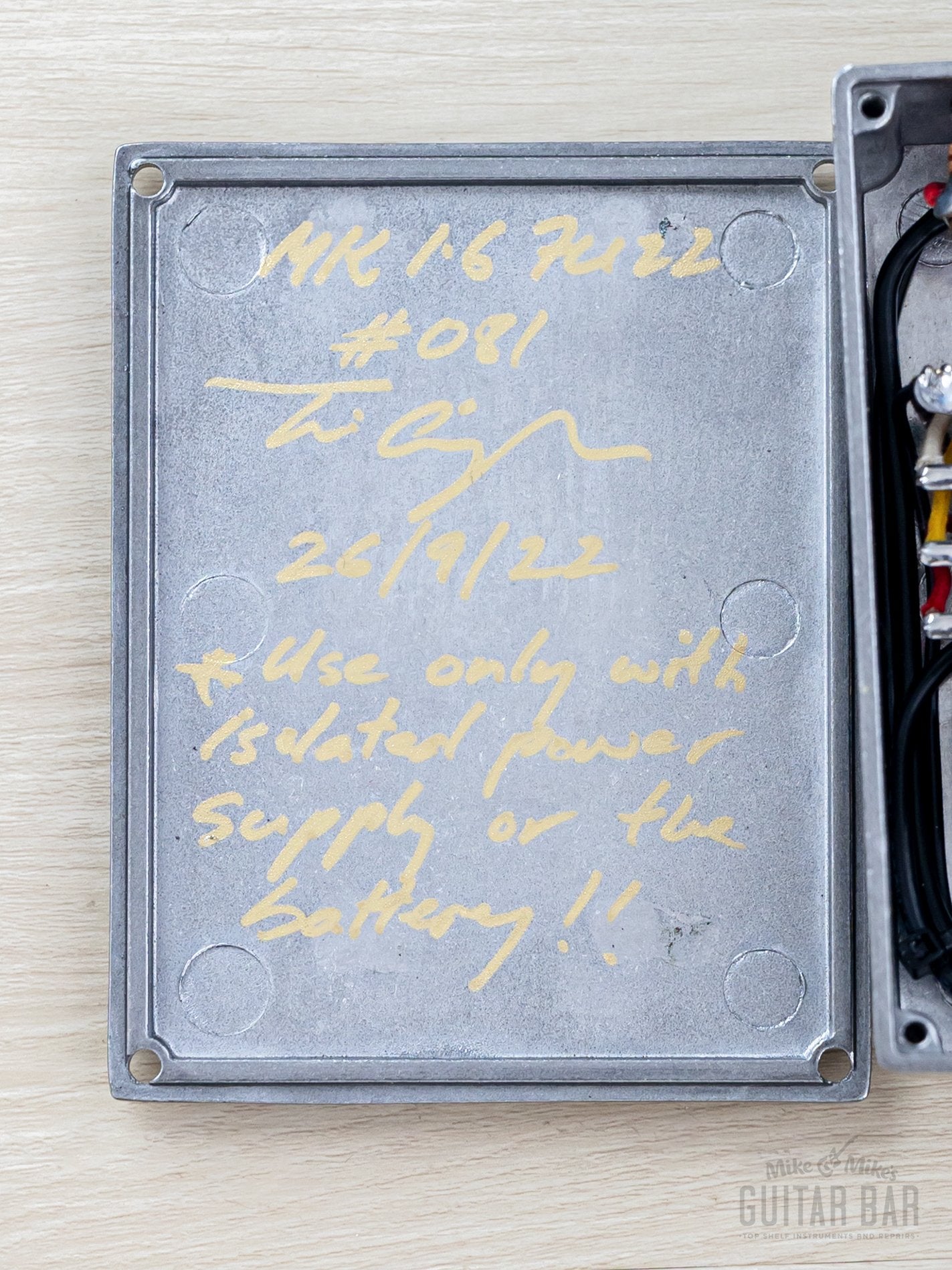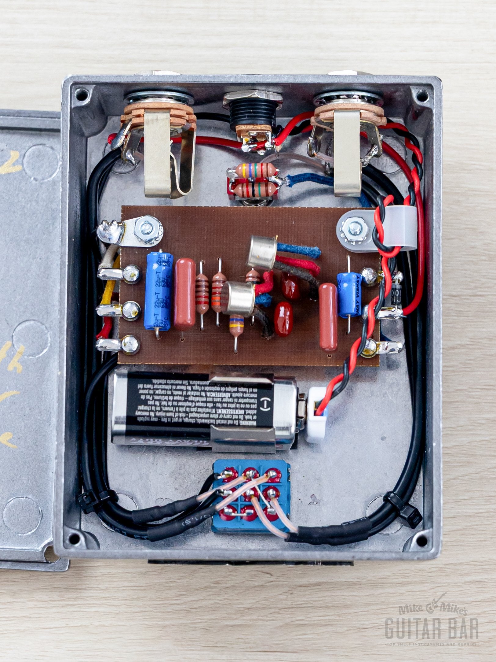 This is a clean stompbox, with just a couple tiny marks on the enclosure. The inside of the baseplate is signed and dated by the builder.