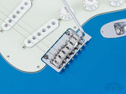 This Hybrid II series Strat is an ideal combination of classic aesthetics and modern, player-friendly features. Premium appointments include a two-point vibrato, locking tuners, USA-spec CTS pots, a Modern C neck profile, a 22-fret rosewood fingerboard with a modern 9 1/2“ radius and narrow/tall fretwire.