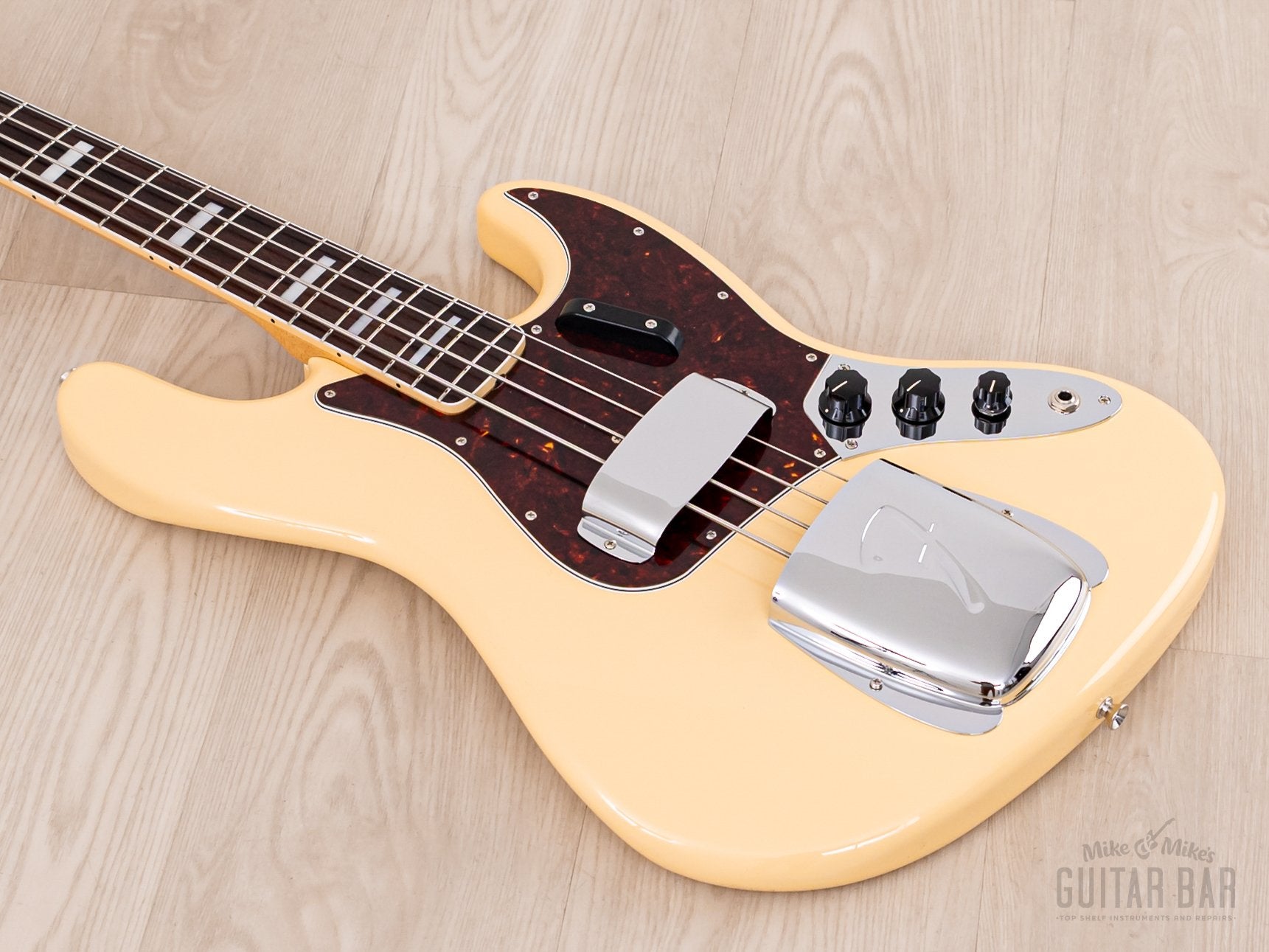 The JB-Vintage single coil pickups deliver an array of traditional Jazz Bass tones, with more upper midrange growl, burp and grind from the bridge pickup, while the neck pickup can offer smoother, broader sounds and sweet thump. This Traditional II Late ‘60s Jazz Bass weighs 8lbs 12oz, professionally setup here at Mike & Mike’s Guitar Bar with 45-105 roundwound strings, easy-playing action, and accurate intonation.