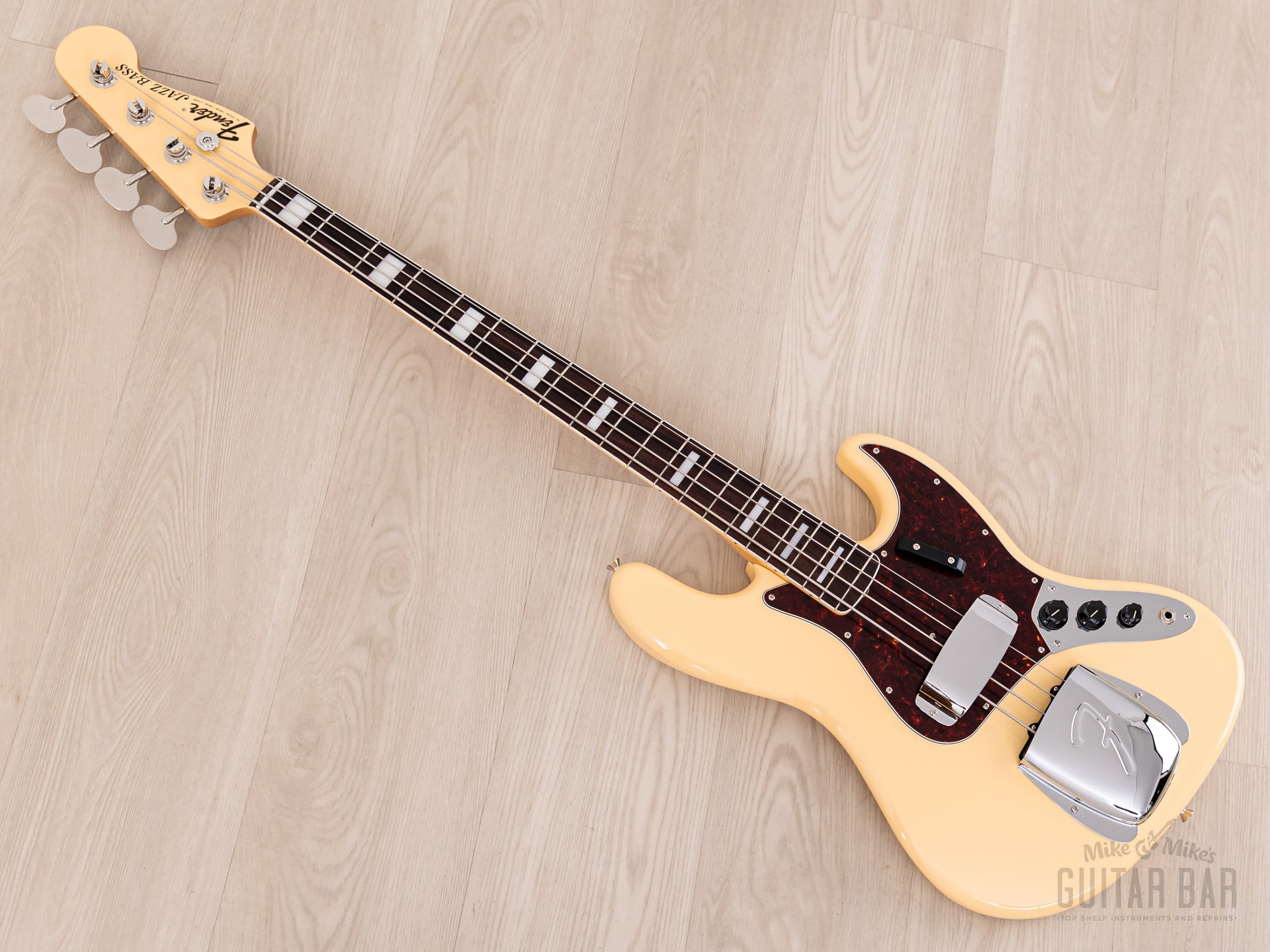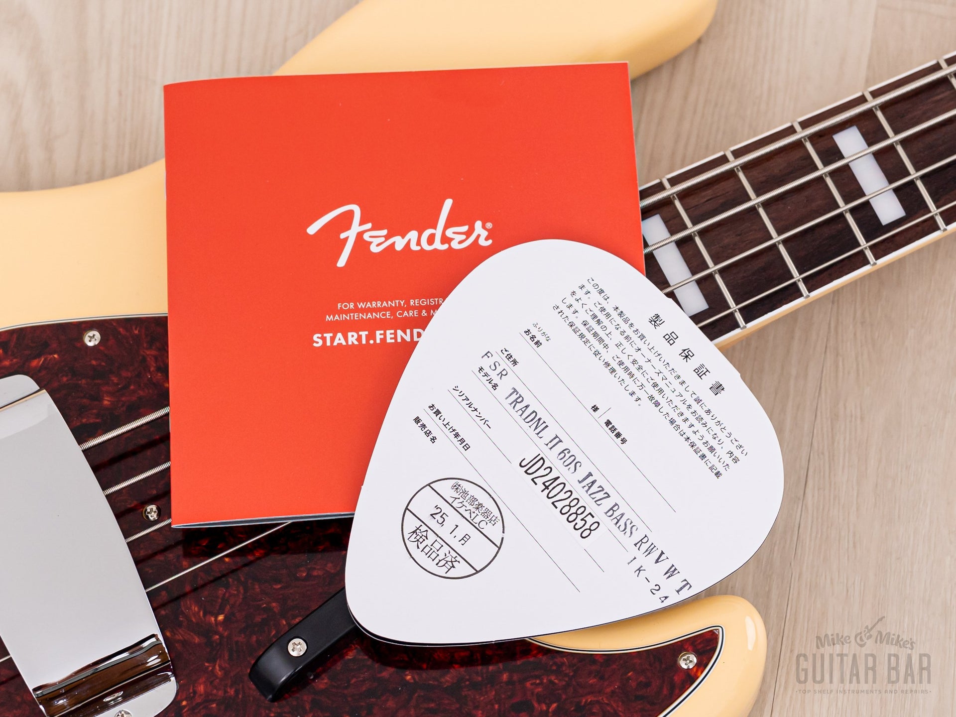 Up for sale, a 2024 Fender Traditional II Late ‘60s Jazz Bass in mint condition, complete with hangtags. This rare “Made in Japan” FSR (Factory Special Run) model was produced in very limited quantities for a single dealer in Japan, Ikebe Gakki, featuring a gloss Vintage White finish with matching headstock, dark red tortoise pickguard, bound rosewood fingerboard with block inlay, “ashtray” bridge and pickup covers, and reproductions of Fender’s “lollipop” tuning machines.