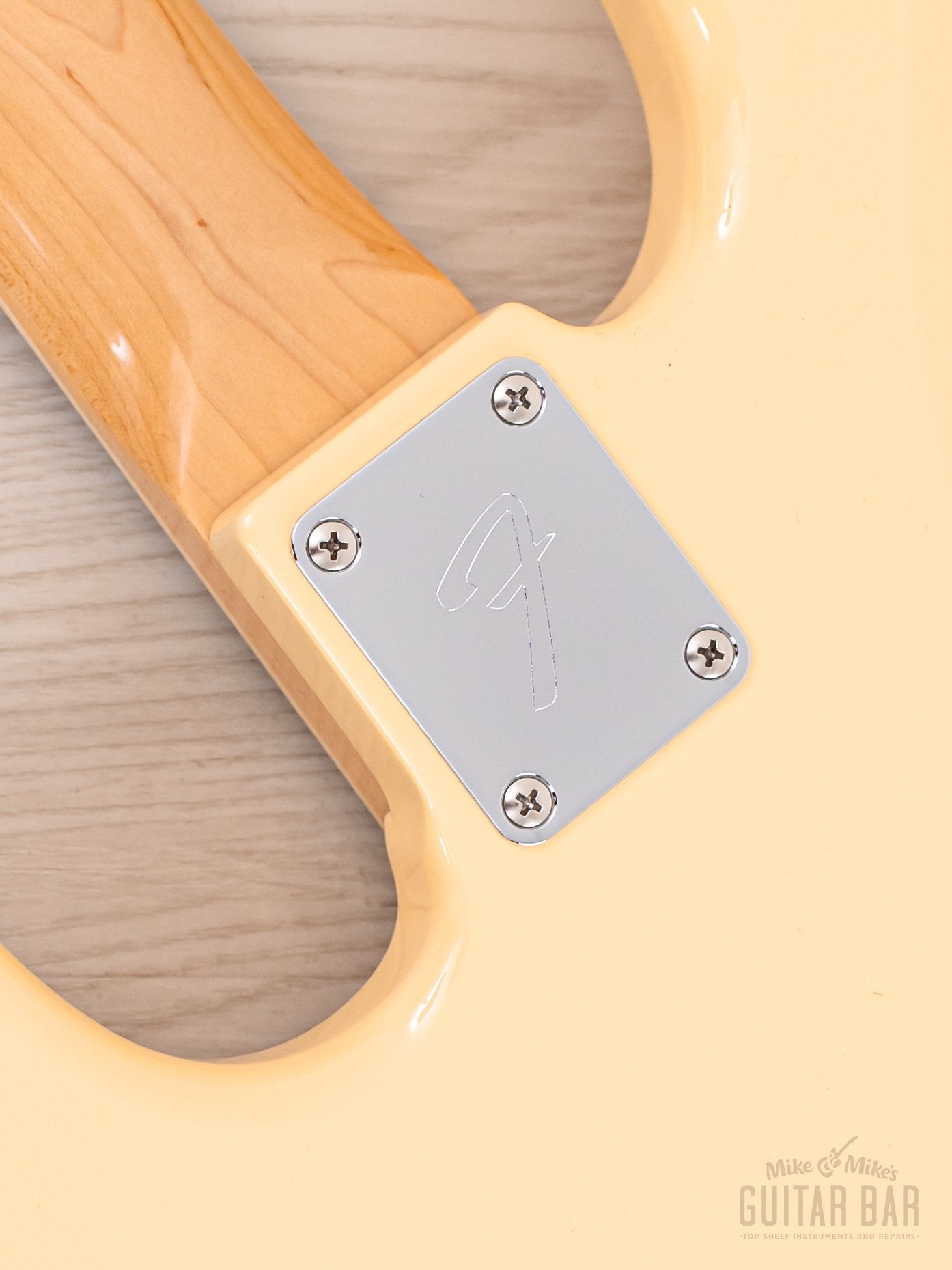 Sourced directly from Tokyo, this is an ostensibly brand new instrument, without a mark on the gloss Vintage White finish. Unique from earlier FSR runs of the Late 60s model, the Vintage White gloss approximates Olympic White with a yellowed clear coat for a decidedly vintage look. The gloss on the neck profile is similarly flawless.