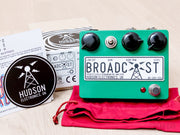 The Broadcast is a transformer coupled, discrete Class-A germanium pre-amplifier based on the classic broadcast consoles of the 1960s. The Broadcast features a specially selected Triad steel-core transformer and a Germanium transistor. Advancing the gain on the Broadcast starts to saturate the transformer and the pedal’s discrete circuitry, giving rise to a gentle and dynamic compression coupled with subtle thickening of the midrange.