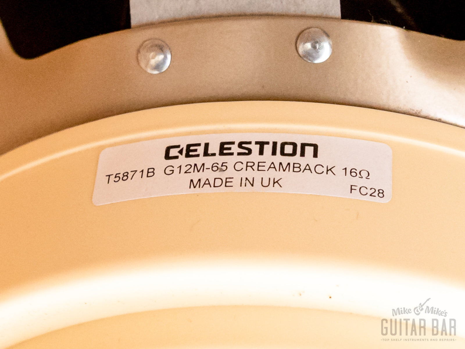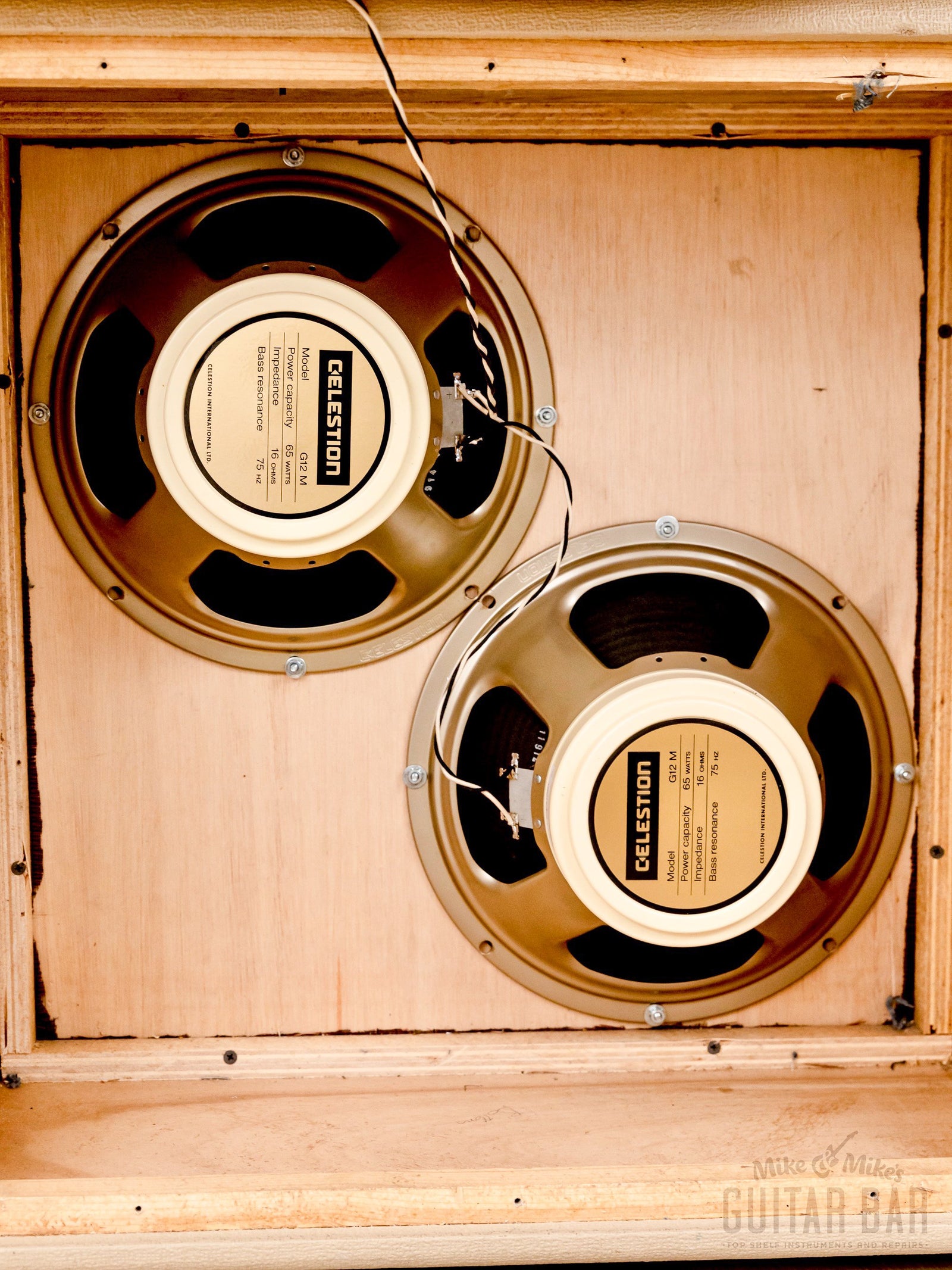 The cabinet features a closed-back design, ensuring a punchier and more immediate sound when compared to a Fender-style cab, loaded with a pair of Celestion G12M Creamback speakers. These speakers, rated at 65 watts with 16 ohms impedance, deliver classic mid-‘60s woody tones, and the increased power handling results in additional low end grunt to complement the warm, vocal midrange and sweet, refined highs.