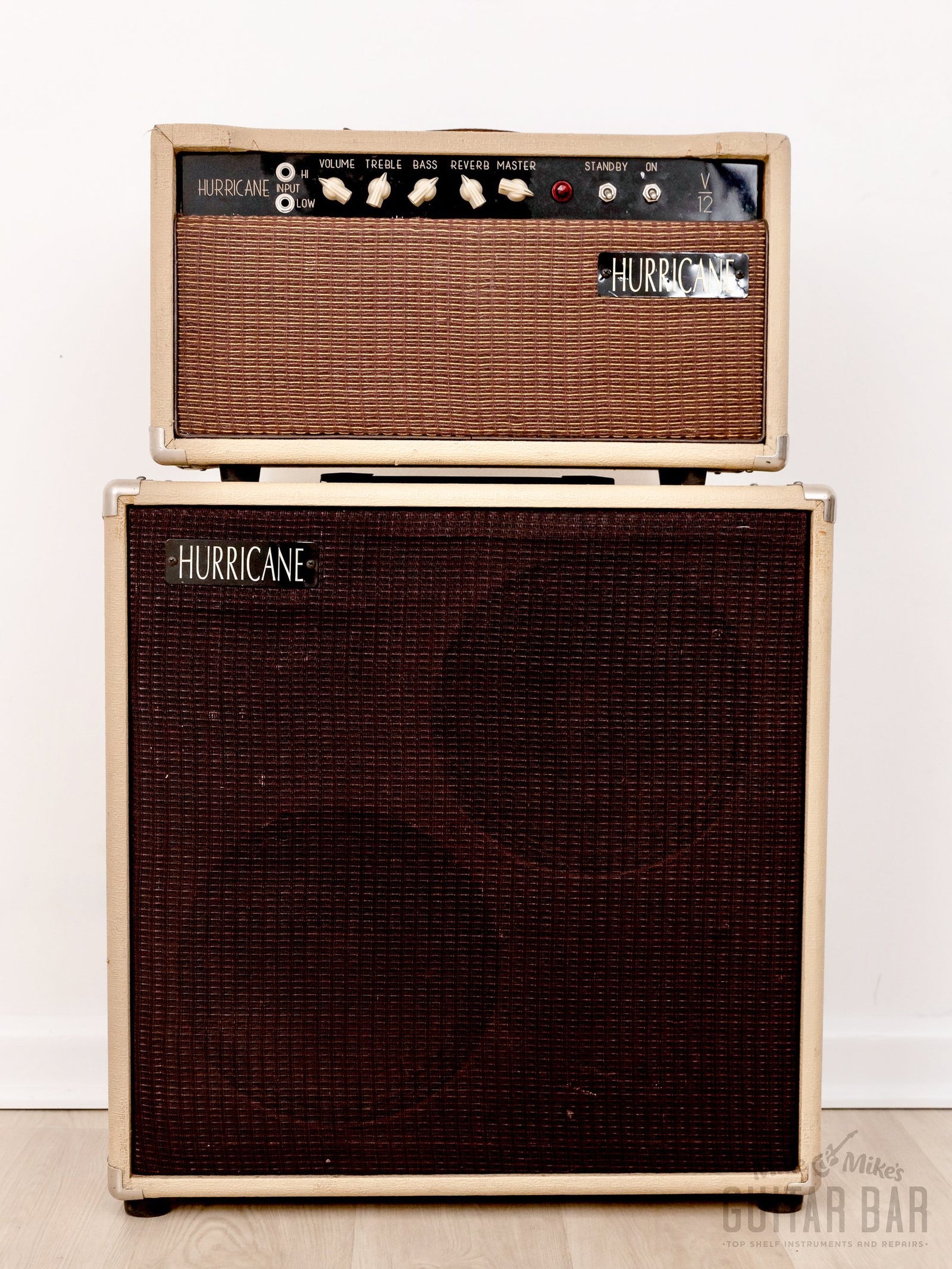 Up for sale, a Hurricane Amplifiers V-12 amp and 2x12” speaker cabinet in excellent condition and in perfect working order. Handcrafted in Sarasota, FL, the V-12 is Hurricane’s take on a classic Black Panel Princeton Reverb, featuring a dual-input, single-channel design and delivering the same sparkling treble articulation and sweetness as that original, iconic amplifier, with lush onboard spring reverb.