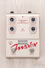 Up for sale, a Maxon Real Compressor RCP660 pedal in near-mint condition, complete with the original box. This Japanese-made pedal is virtually identical to the better-known Ibanez Tube King, and the RCP660's controls offer an incredible array of compressed tones.