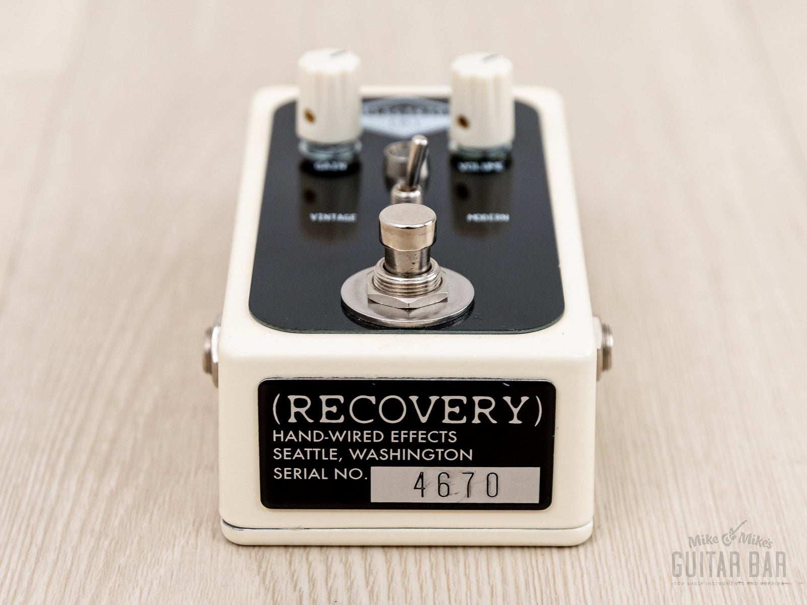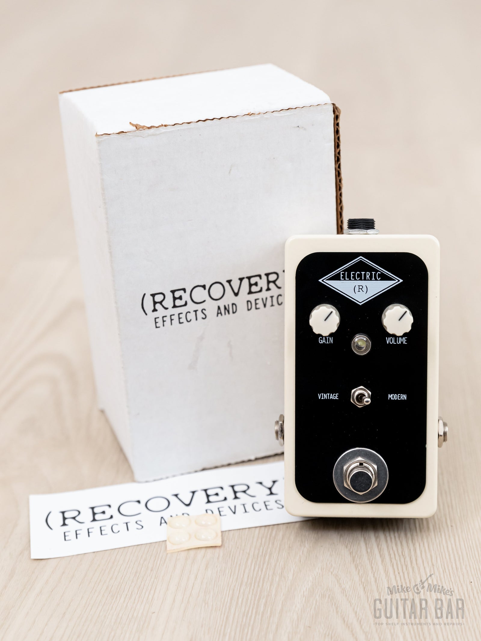Up for sale, a Recovery Effects Electric Transparent Drive/Compression pedal in near-mint condition and in perfect working order, complete with the original box. Hand-wired in Seattle, Washington, this expertly crafted pedal offers a range of exquisite tones from slight boost/compression to a warm overdrive, able to maximize any rig and perfect for a first-stage OD or Boost application. Switchable transistors allow you to switch between modern and vintage tones, using a BC547 and oil can-style BC108, with simple Gain and Volume controls.