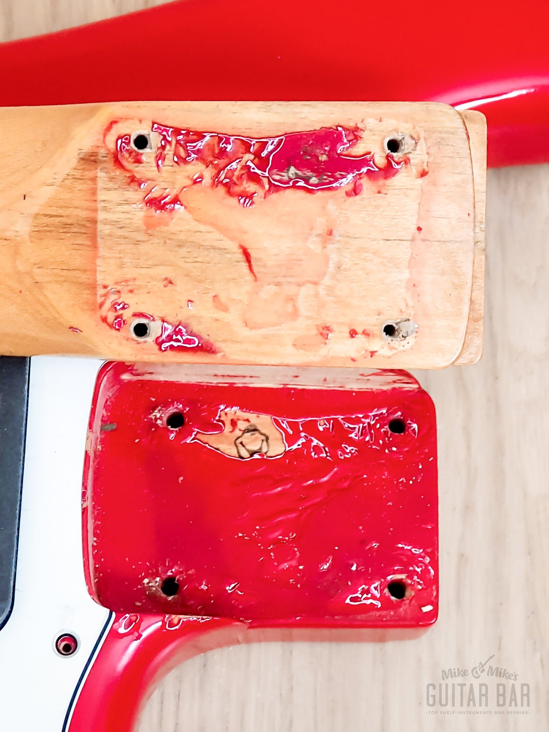 -Factory markings: Warmoth turtle present beneath finish in neck pocket