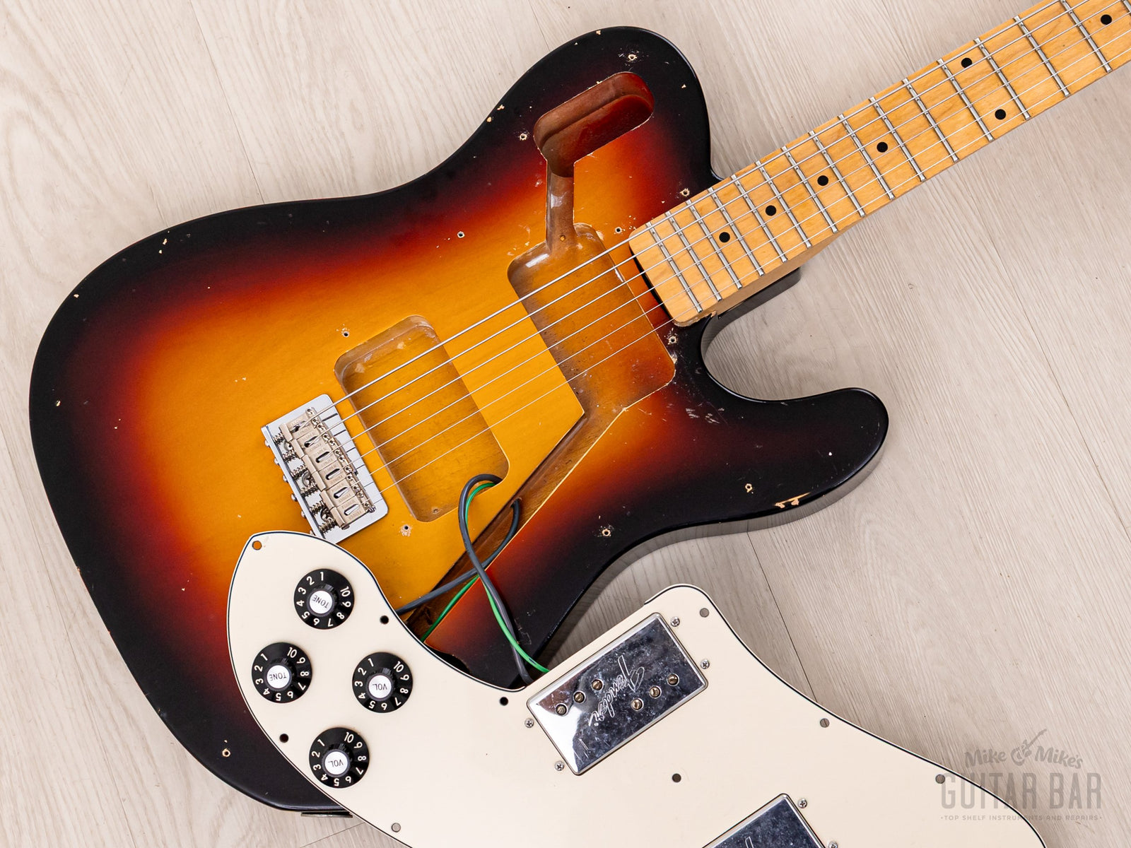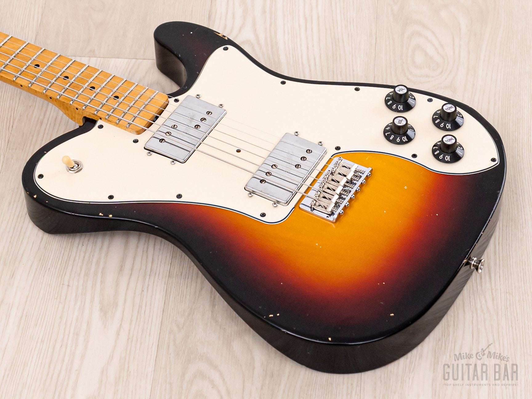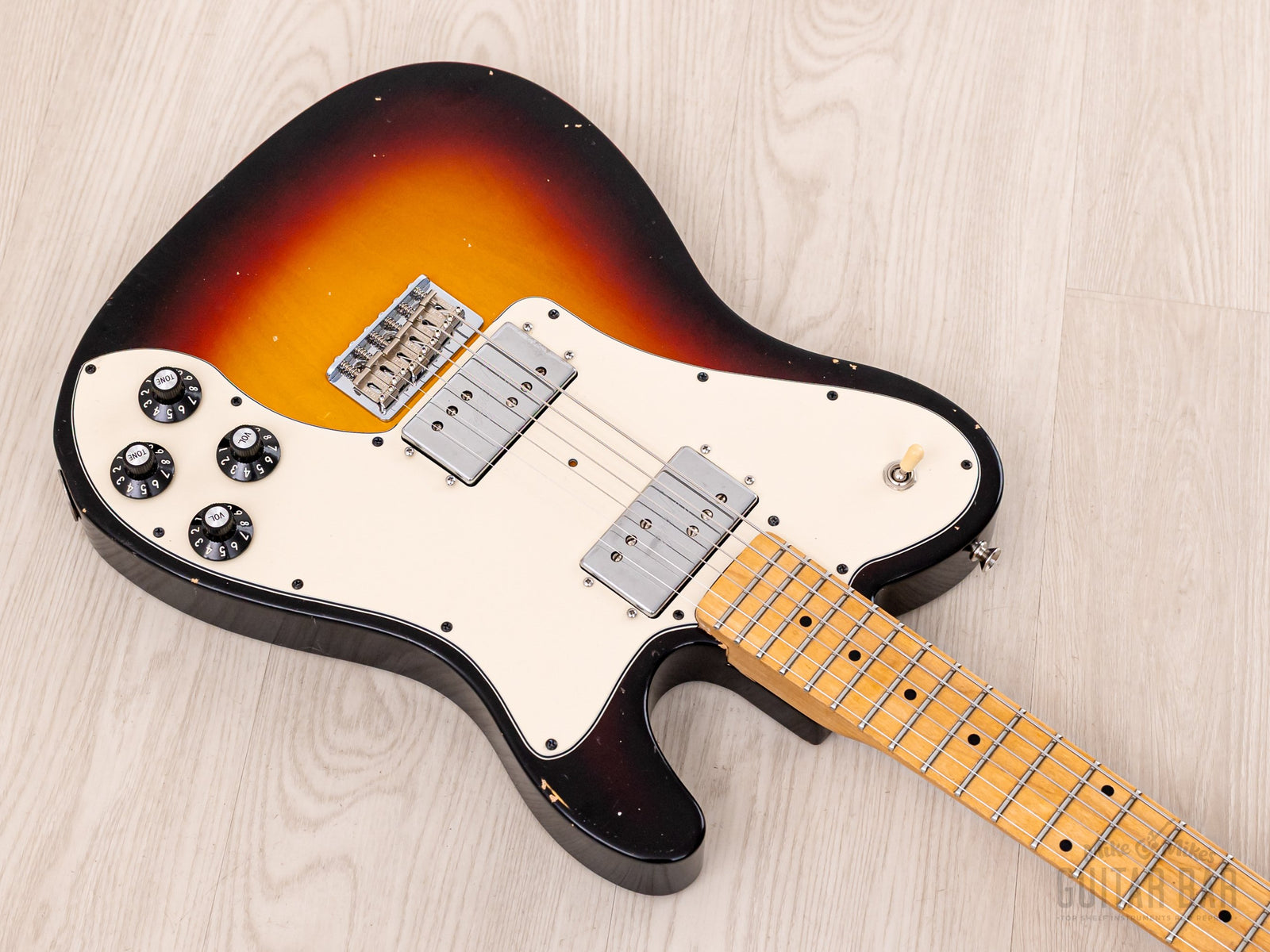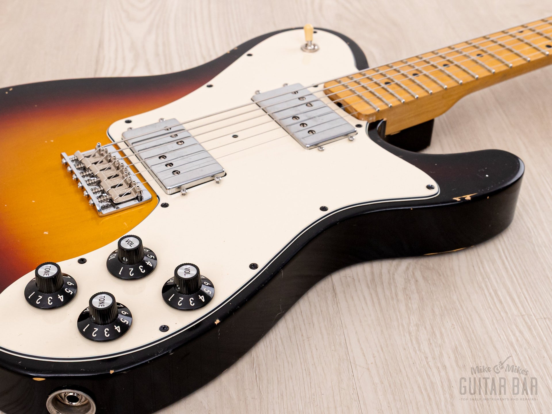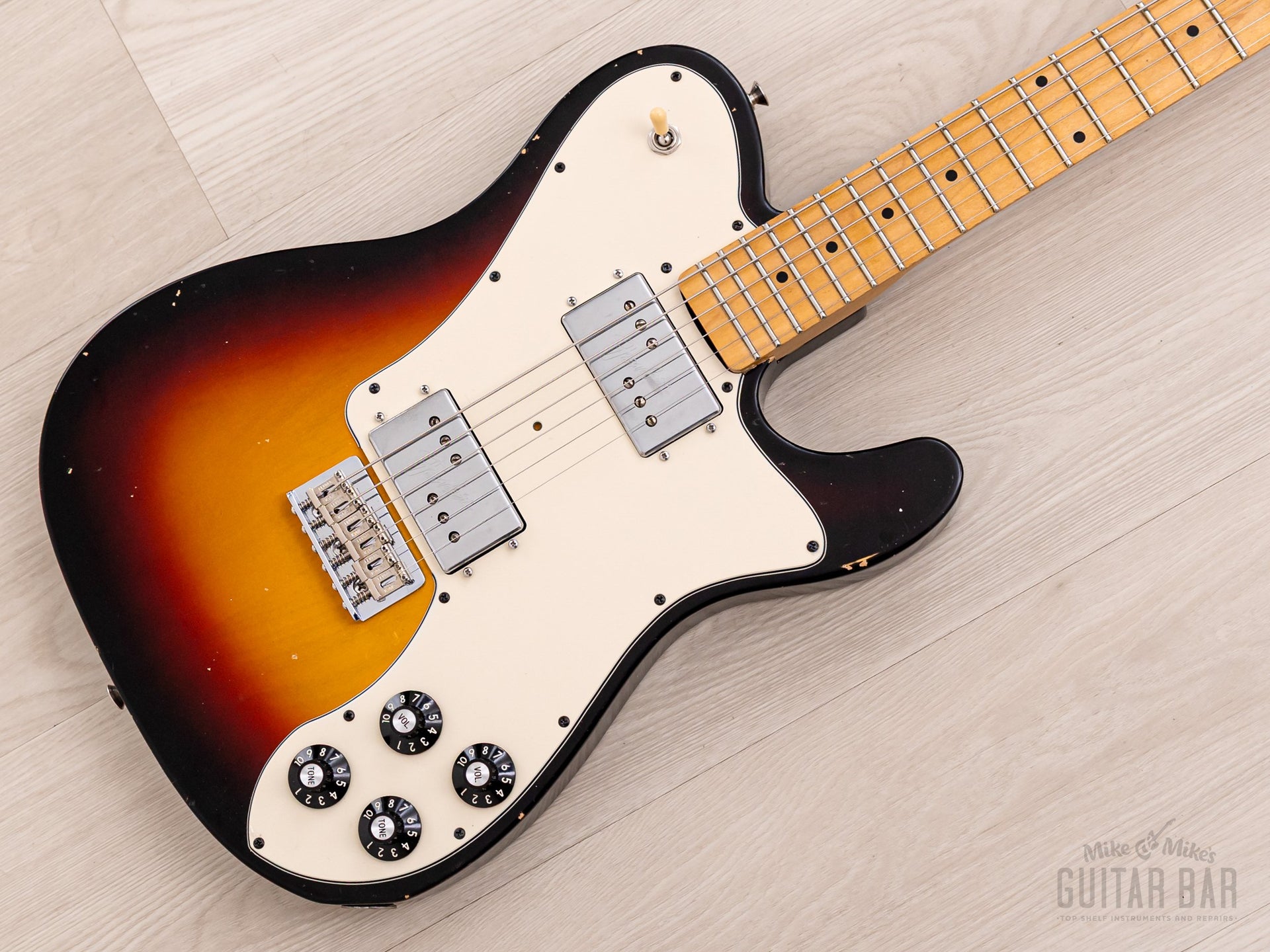 Up for sale, a custom-built Baritone Telecaster Deluxe, featuring a nitro lacquer-finished MJT body and 28 ⅝” scale DC Kunkle V neck. The Road Worn Wide Range humbuckers replicate the warmth, detail, and percussive clarity of the original Seth Lover design, and these pickups are a great match for the sonic range of a baritone, capturing the full, expansive warmth of the low end while still retaining optimal articulation and treble sweetness. This guitar weighs 7lbs 10oz, professionally setup here at Mike & Mike’s Guitar Bar with 13-62 strings, low action, and accurate intonation.
