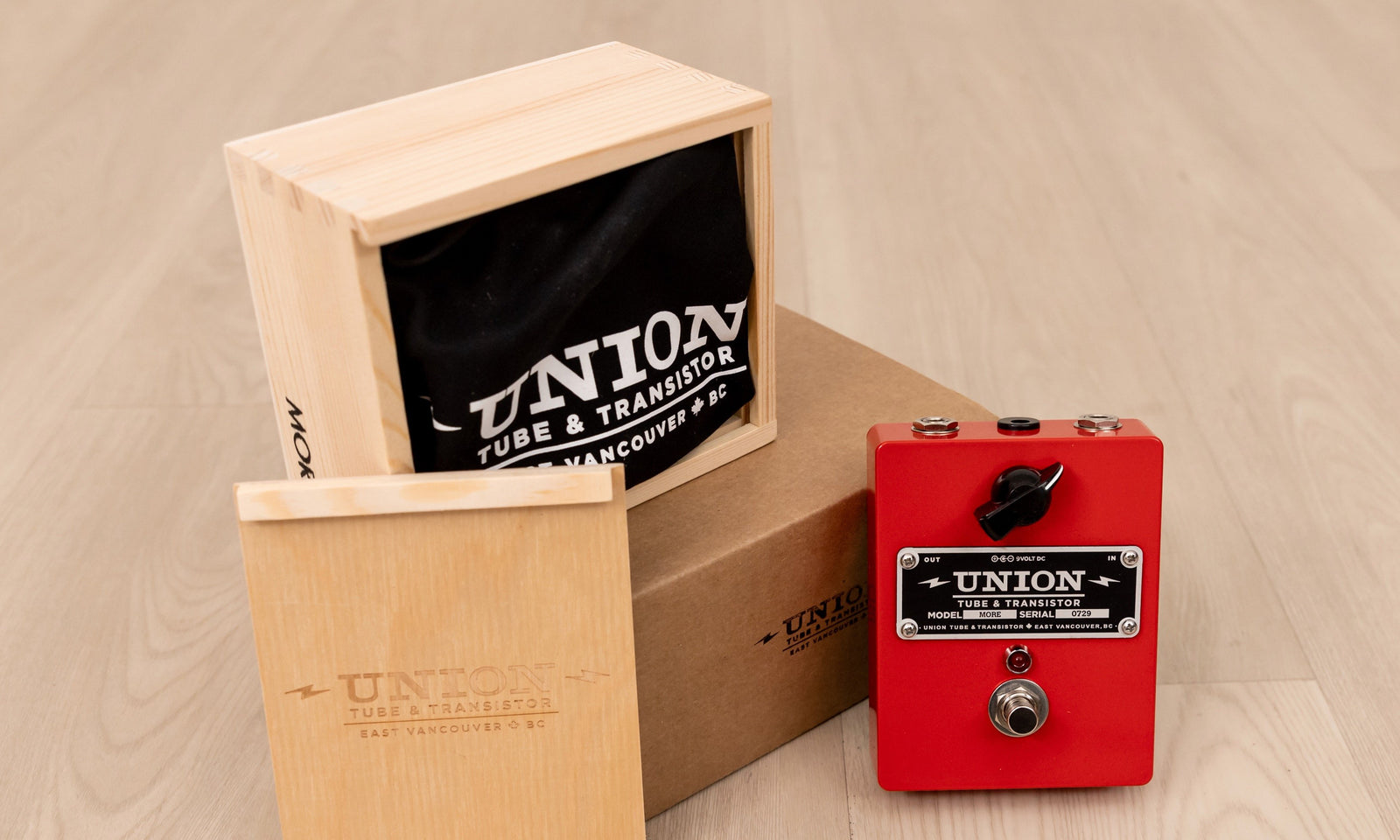 All Union Tube & Transistor pedals are hand crafted in East Vancouver, BC and feature rugged Hammond die-cast aluminum enclosures, socketed IC chips, Alpha pots, Switchcraft switches and jacks, and top quality parts throughout.