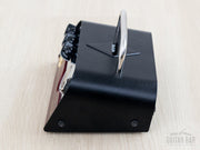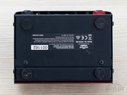 Aesthetic touches include faux wood paneling, a mirror finish faceplate, a vintage-style VU meter, and a carrying handle. This is a clean example, with just a few minor marks and scuffs on the enclosure.