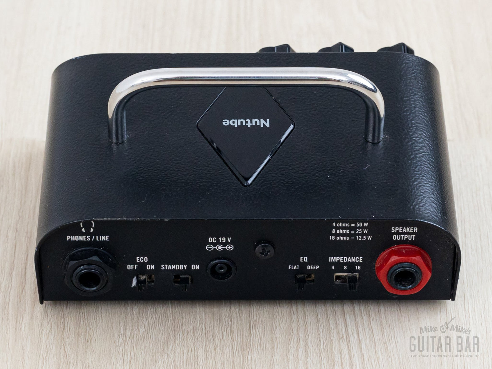 About as no-frills a tone machine as they come, the MV50 Boutique yields everything from warm cleans to cutting overdrive with simple Gain, Tone, and Volume controls, and there’s a sense of natural compression present that is typically only found via genuine vintage tube amps or the best sims. Tonally, it’s very Vox, with chiming cleans and a robust midrange response. The circuit features NuTube, a “new vacuum tube that utilizes vacuum fluorescent display technology,” which has the feel of a traditional full-size tube being run at a lower voltage, resulting in slightly more aggressive distortion and an overarching smoothness to the cleans. Finally, the EQ switch on the back toggles between Flat and Deep, designed to ensure the MV50 Boutique pairs well with any given cabinet size. Other features include a 4, 8, and 16 ohms impedance toggle and a Speaker Emulated Line/Headphone output jack.