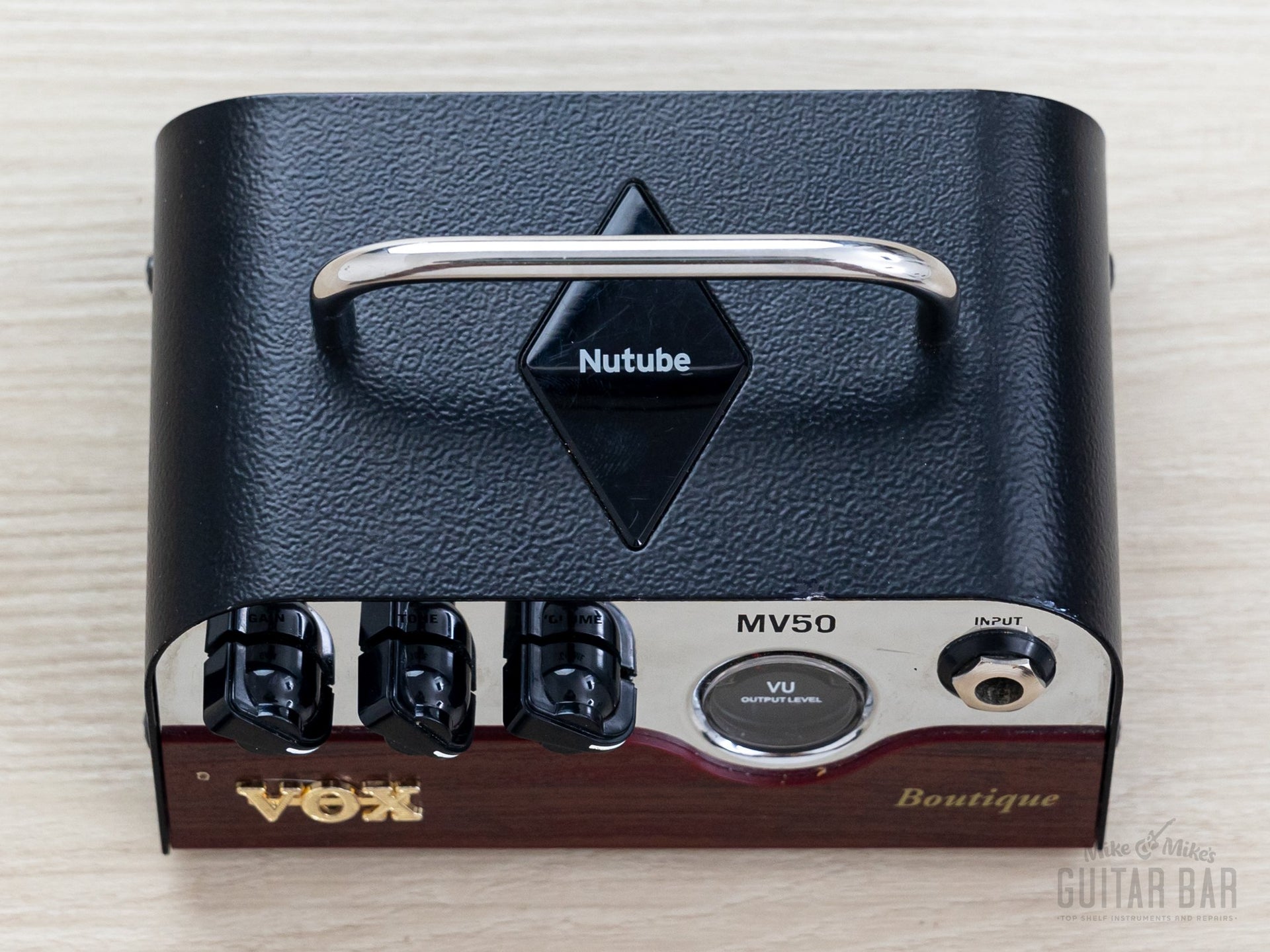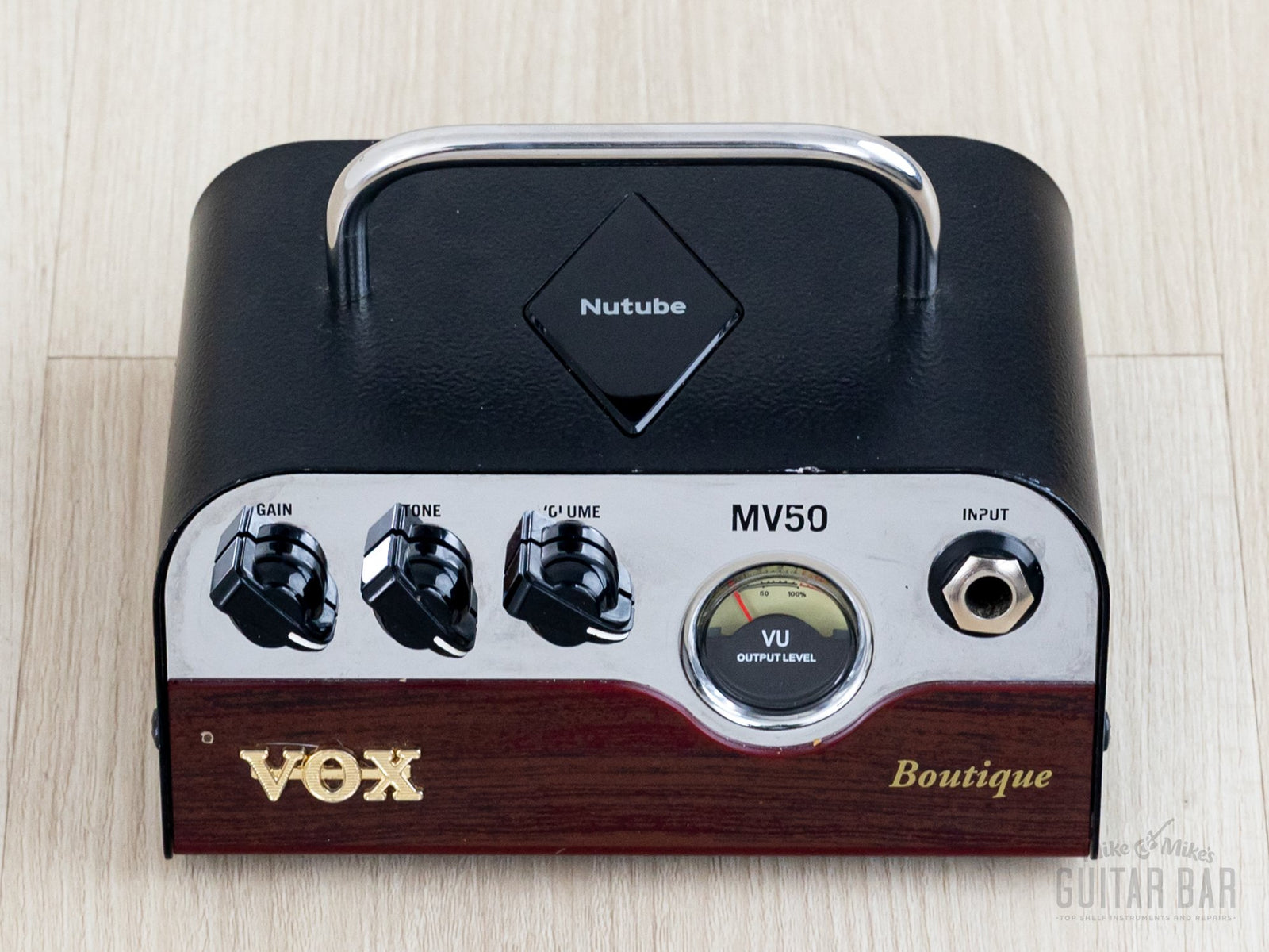 Up for sale, a Vox MV50 Boutique mini amplifier head in near-mint condition and in perfect working order. Delivering rich, natural-sounding vintage tones in a decidedly diminutive form factor that practically fits in the palm of the hand, this Vox amp boasts a remarkable 50W of output power, loaded with Vox’s proprietary NuTube technology.