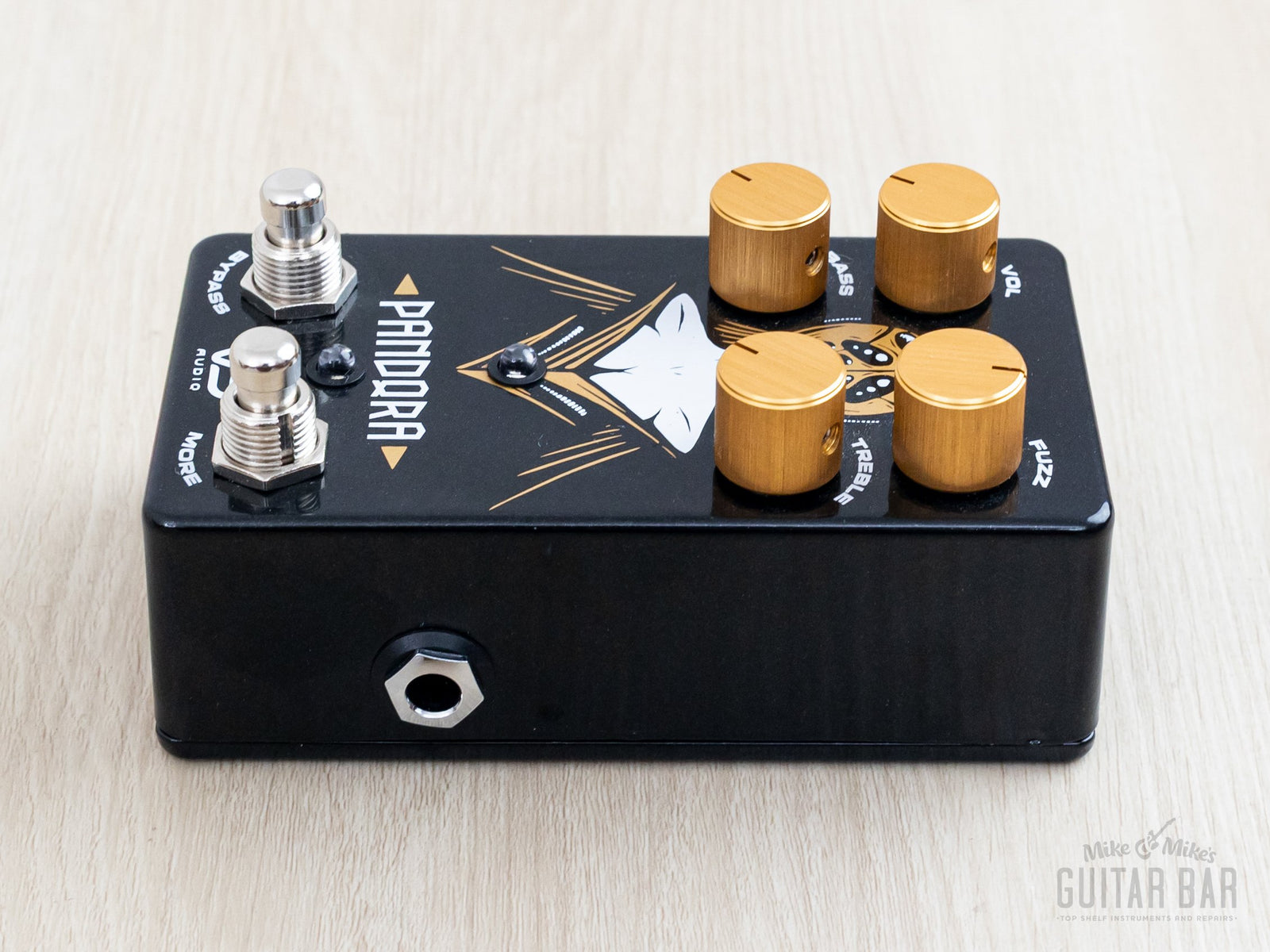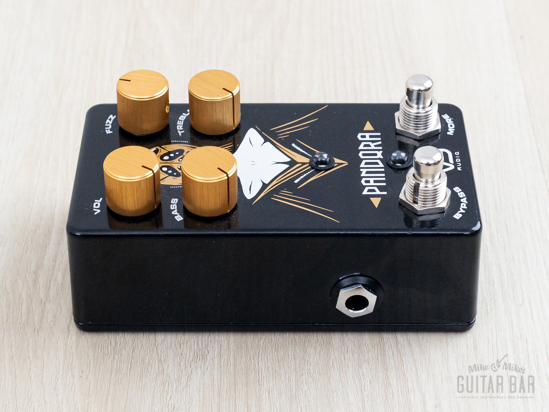 Up for sale, a VS Audio Pandora in near-mint condition and in perfect working order. Expanding on the platform of the Arbiter Fuzz Face circuit, this boutique pedal features dual gain stages and a pair of hand-selected NOS Tungsram AC125 germanium transistors. Active Bass and Treble controls offer up to 20dB of added boost, allowing for meticulous sound-sculpting from thin and dark to bold and bright. The Pandora behaves more like an overdrive/boost with the Fuzz turned down low, and delivers thick, face-melting fuzz with smoldering sustain when cranked. A unique built-in buffer preserves the guitar’s signal regardless of where the pedal sits in the chain, and the More footswitch offers an additional boost that’s perfect for searing leads and white hot melodic playing.